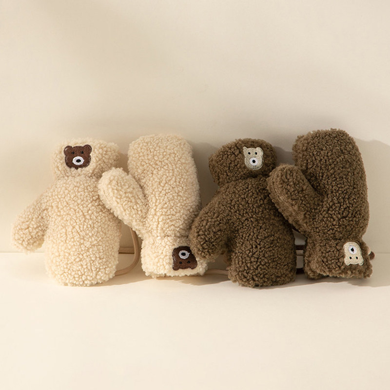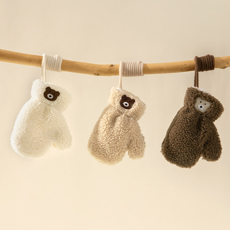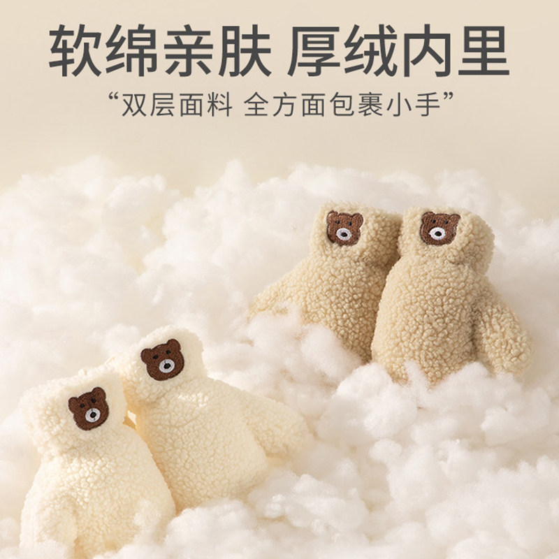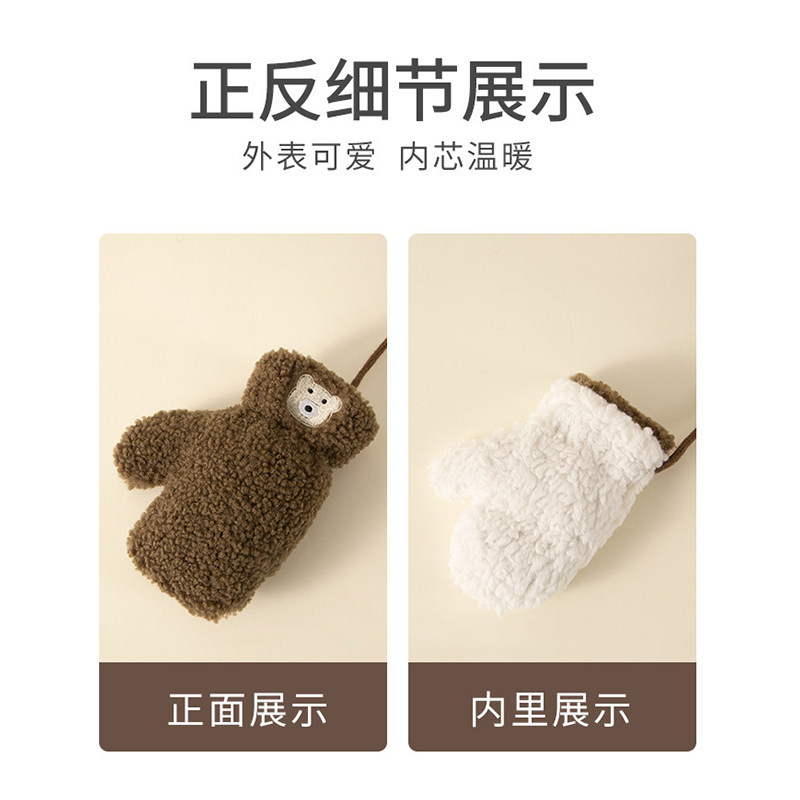 羊羔绒儿童手套秋冬季全包手指宝宝挂脖连指男童女童户外防风防寒