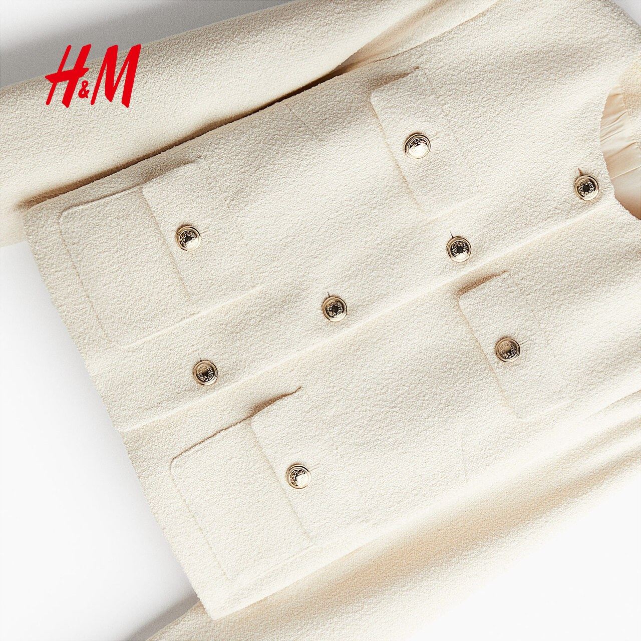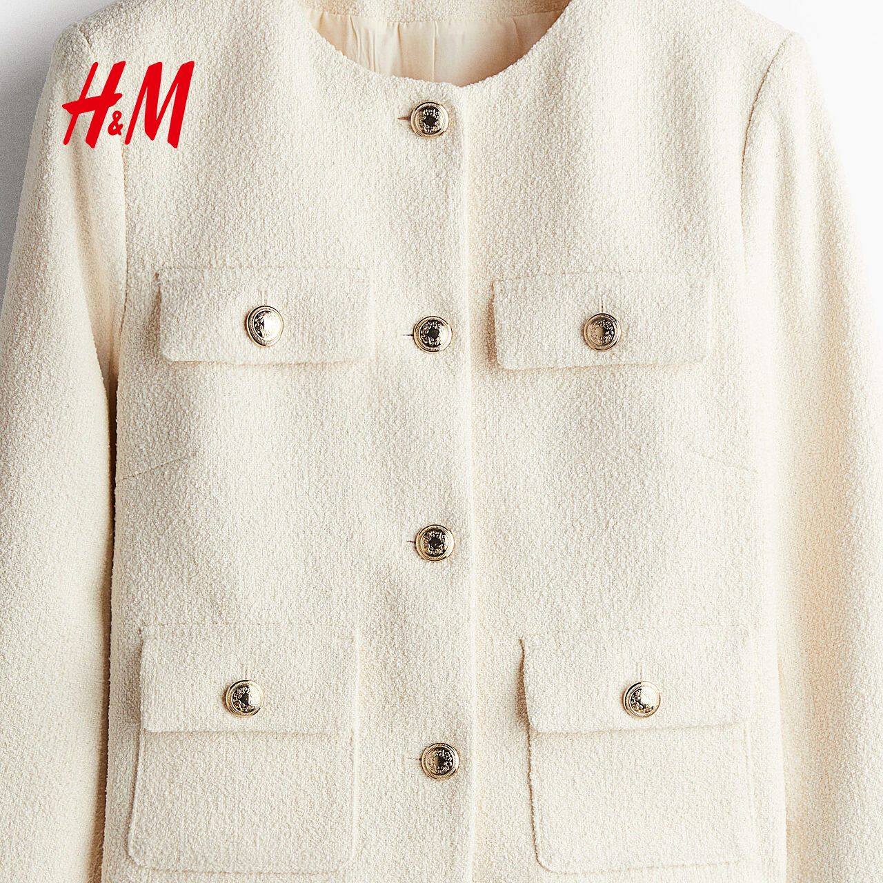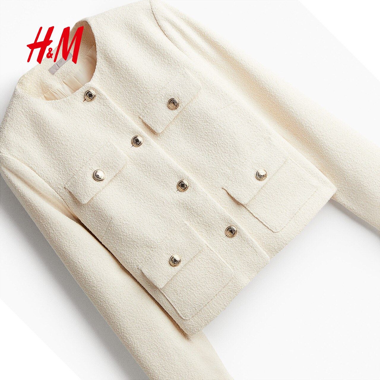 HM女装外套秋季新款纹理编织廓形粗花呢小香风外套外套1241437