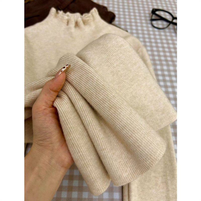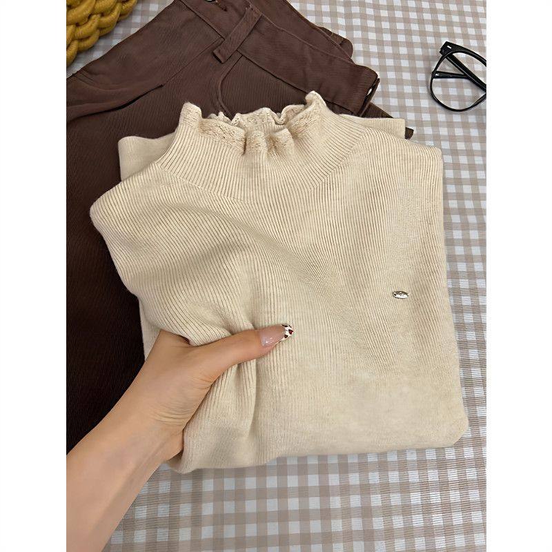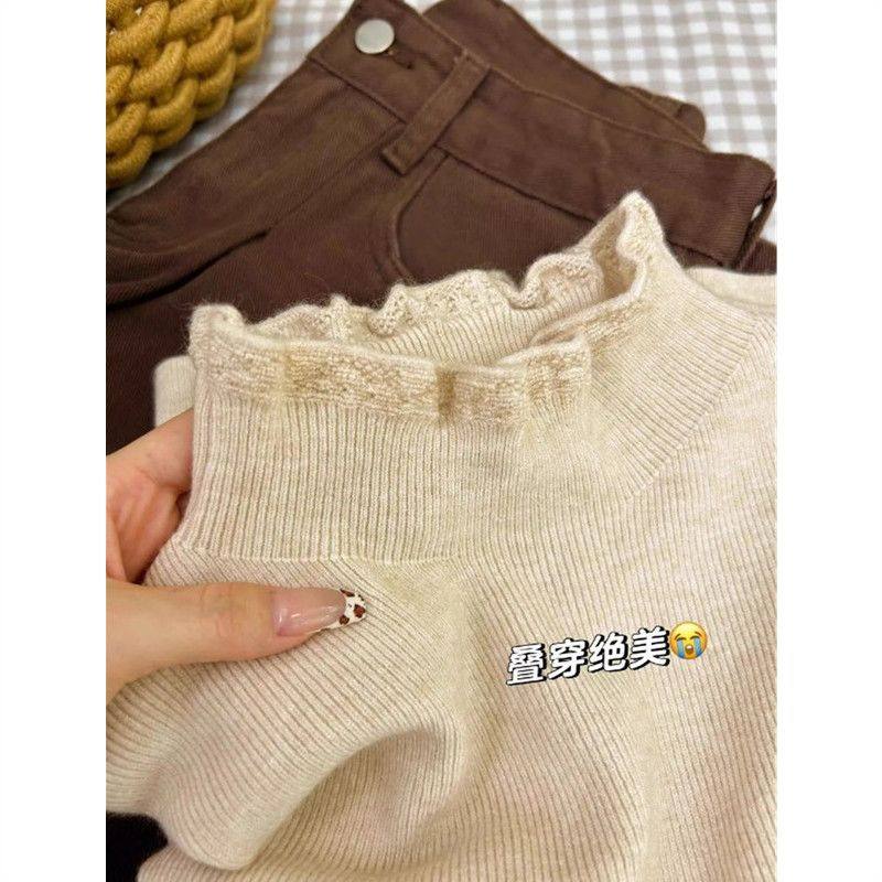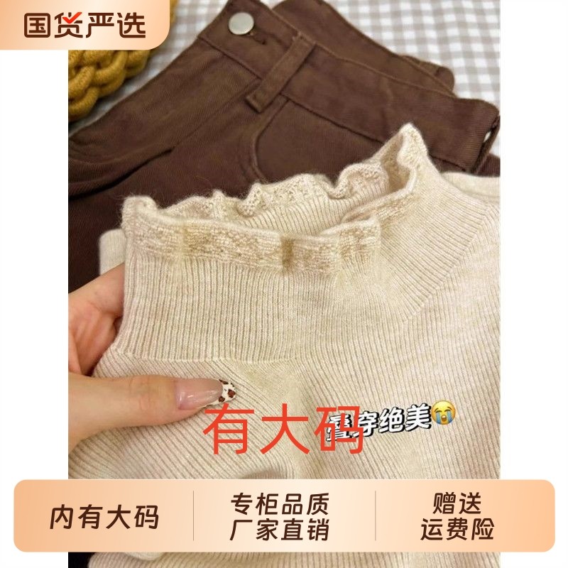 韩系半高领花边领针织衫女2025秋冬纯色保暖大码内搭打底衫上衣