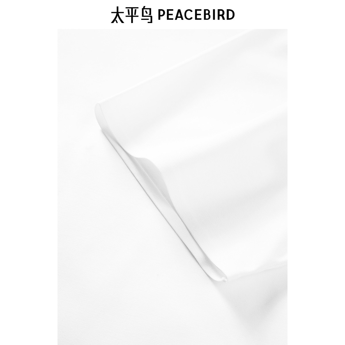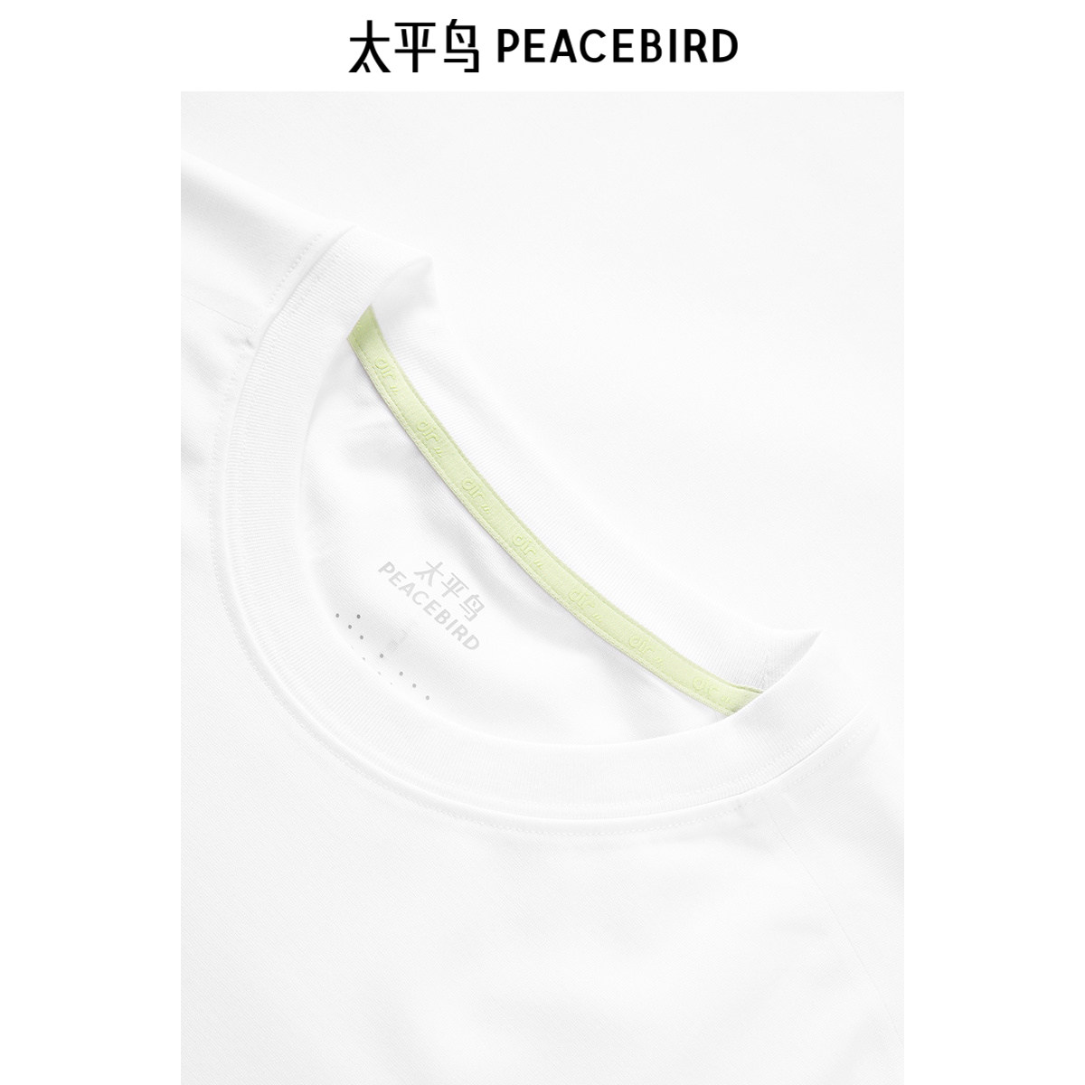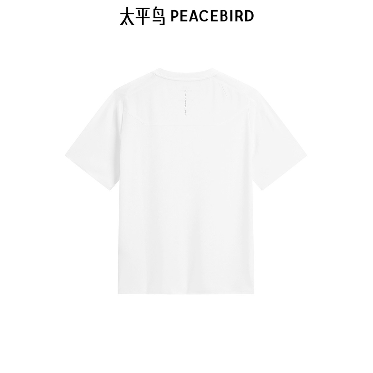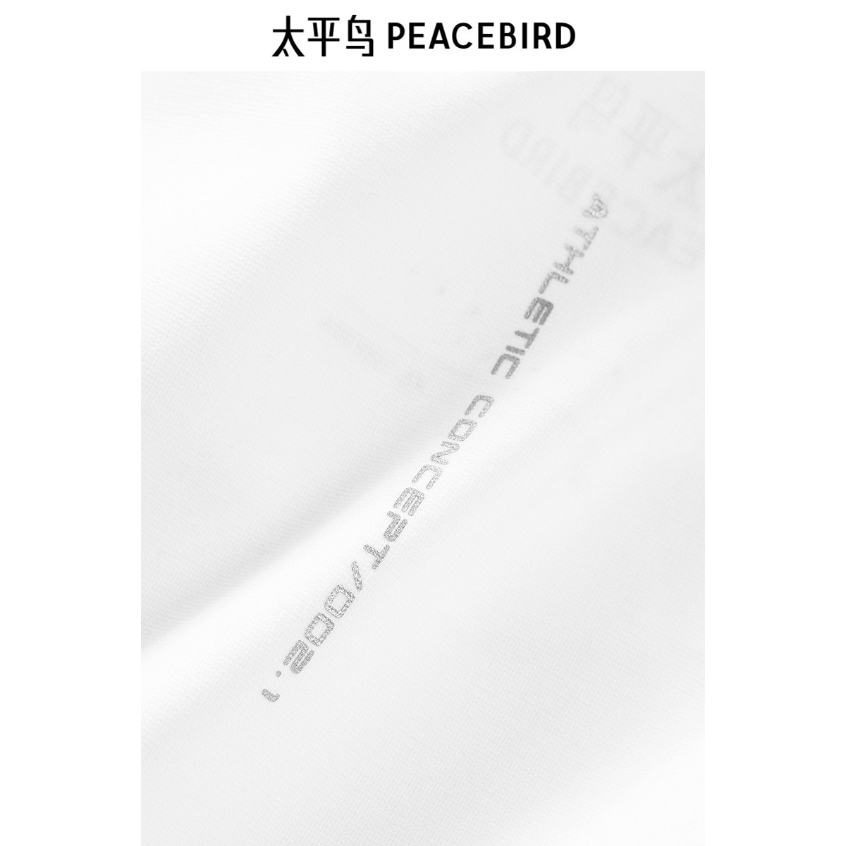 太平鸟男装 纯色圆领T恤秋季印花合体青年白色短袖体恤男