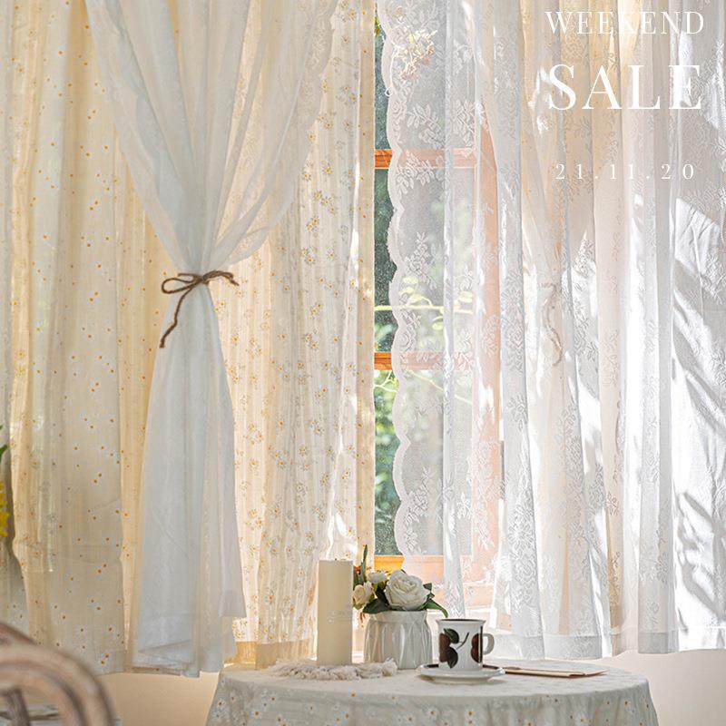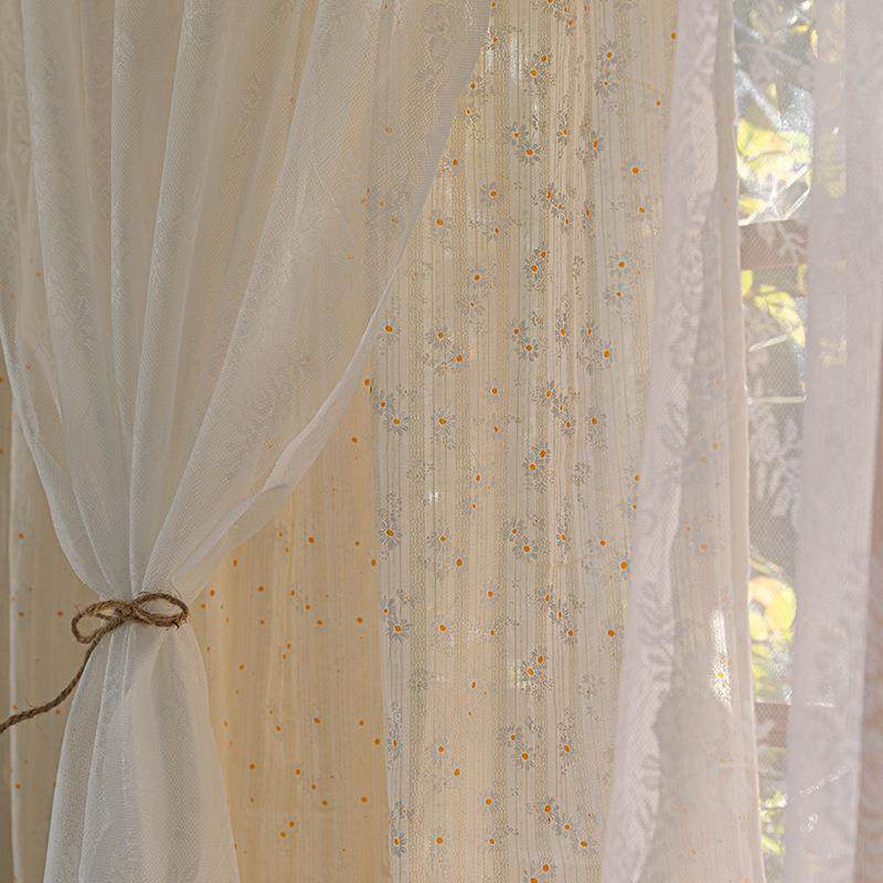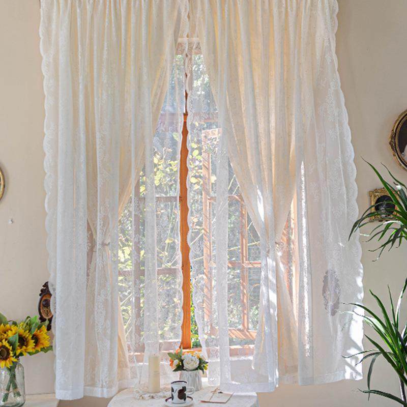 7L8K双层法式复古窗帘美式田园白色蕾丝纱帘公主风阳台飘窗小雏菊