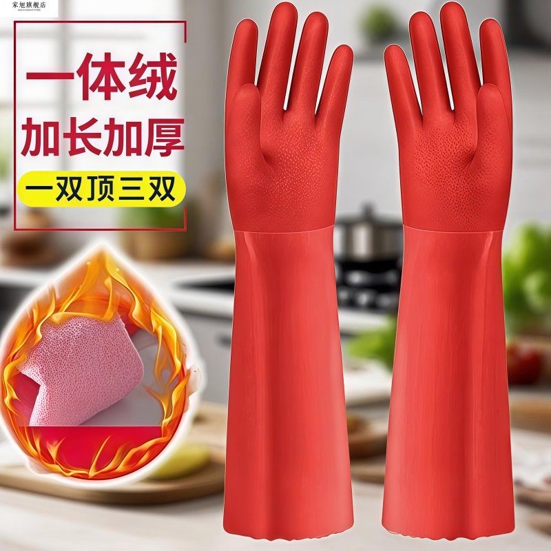 洗碗手套加绒加厚保暖款男女厨房耐用橡胶乳胶皮洗衣加长手套家务