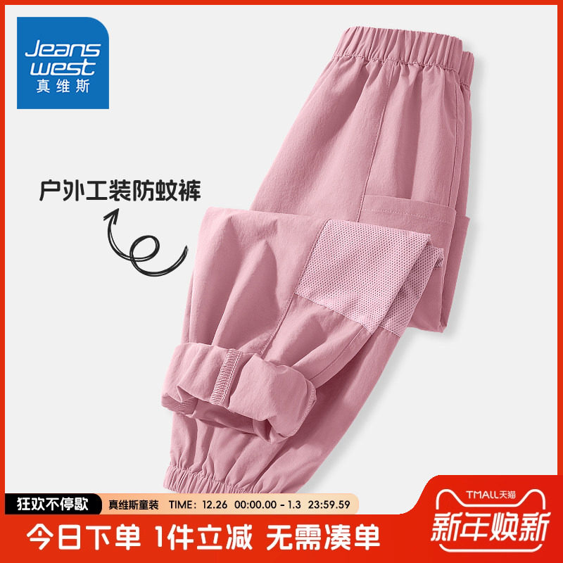 真维斯童装女童工装裤夏款儿童户外冰丝运动防蚊裤中大童薄款裤子