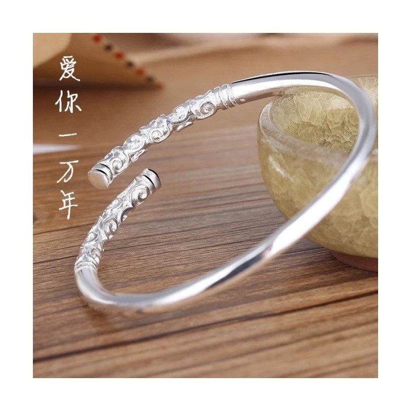 周六福古法银手镯女磨砂S999足银素圈镯情侣节日礼物送男友送女友