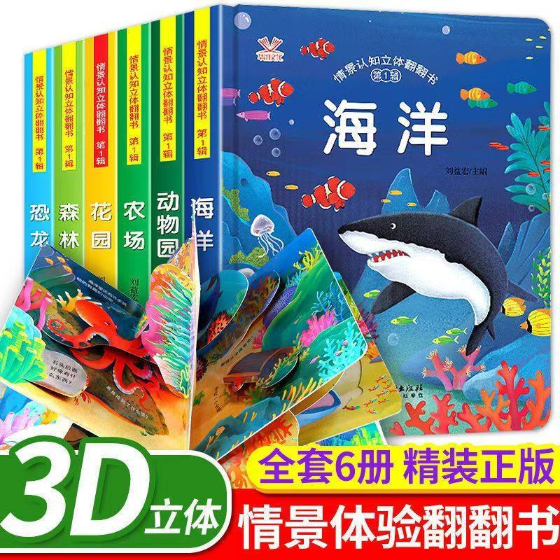 硬壳精装儿童3d立体书翻翻书早教1-3-6岁启蒙认知书婴儿洞洞书机关书海洋森林动物园恐龙农场花园奇幻的神奇的动物有趣小秘密情景