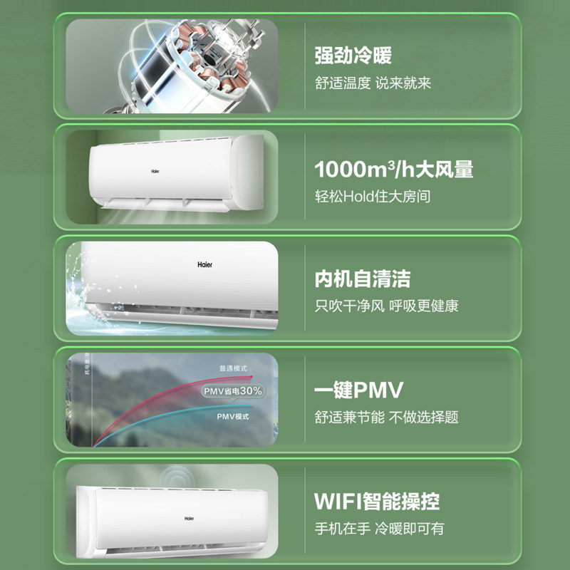 [国补20%]海尔空调1.5匹家用一级能效变频冷暖卧室统帅挂机节能