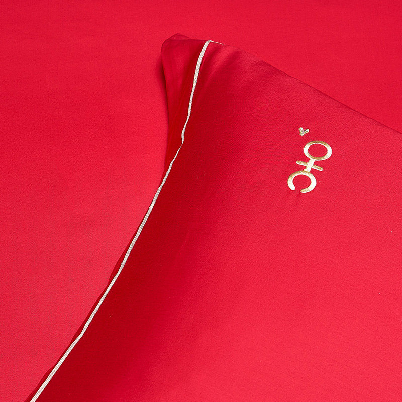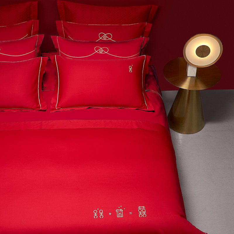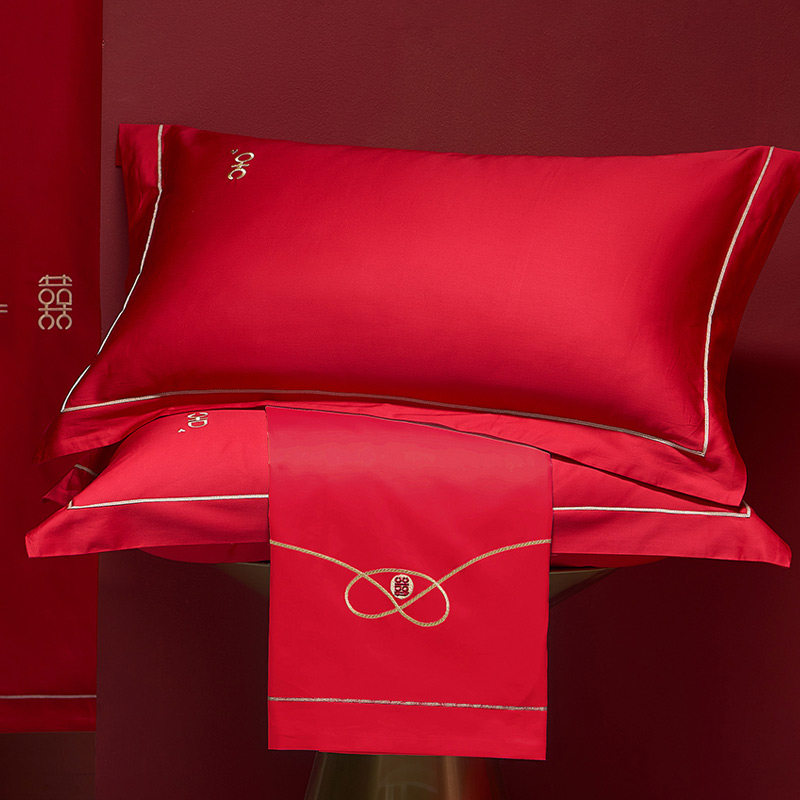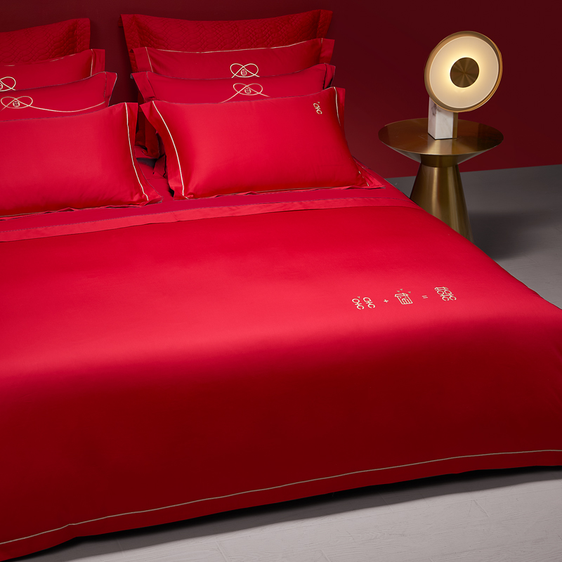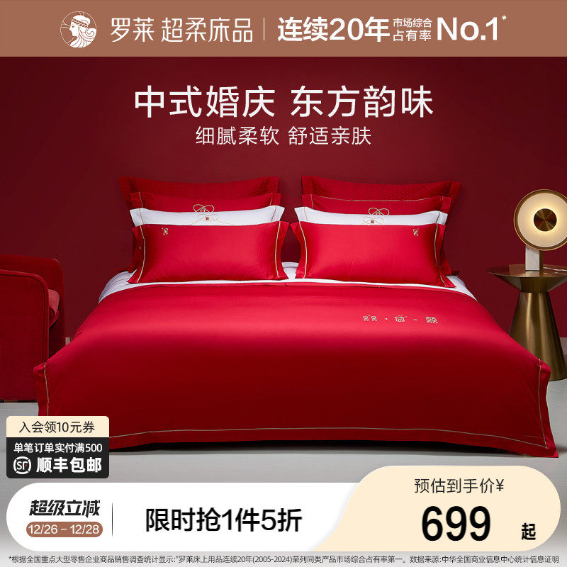 罗莱家纺结婚四件套全棉贡缎床上用品红色高端婚庆床单被套套件