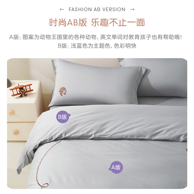 无印良品全棉四件套学生宿舍纯棉卡通儿童被套床单三件套床上用品