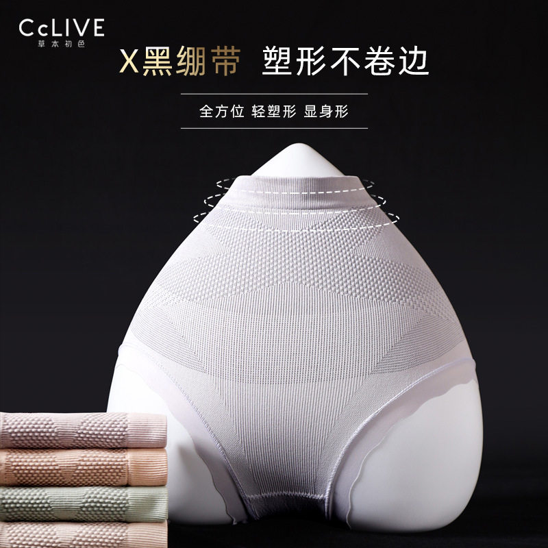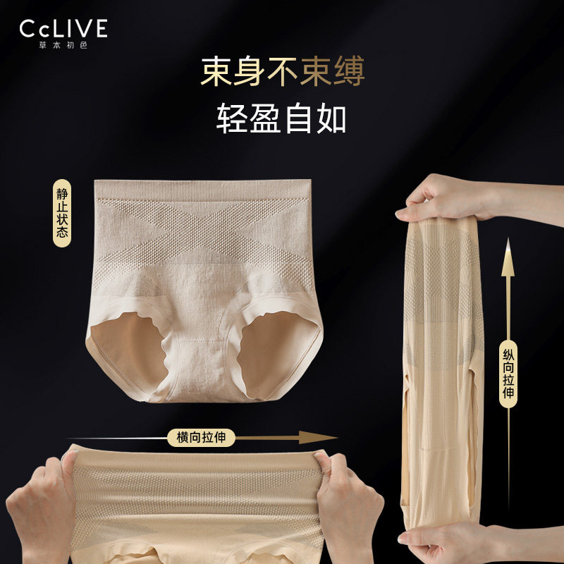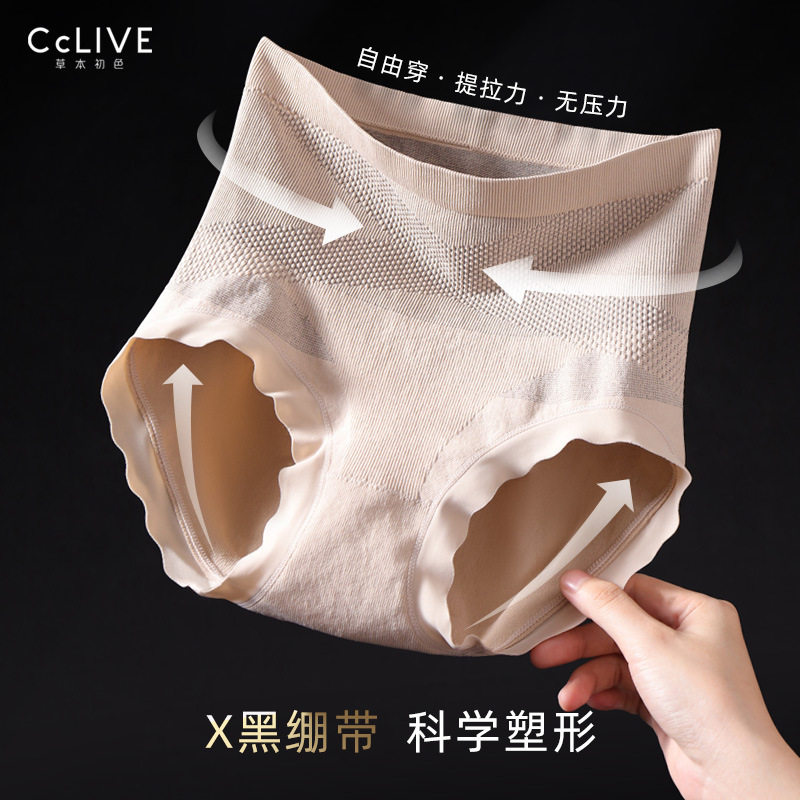 草本初色黑绷带轻塑裤女士收腹提臀透气纯棉底裆三角裤女塑形塑身