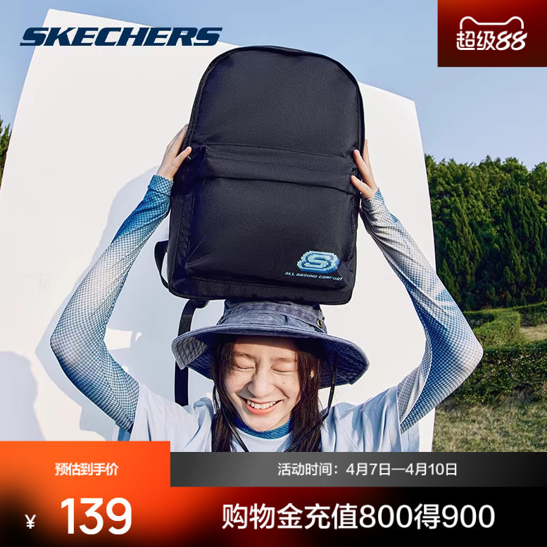 斯凯奇双肩包大容量简约旅行背包开学季百搭大学生运动休闲书包