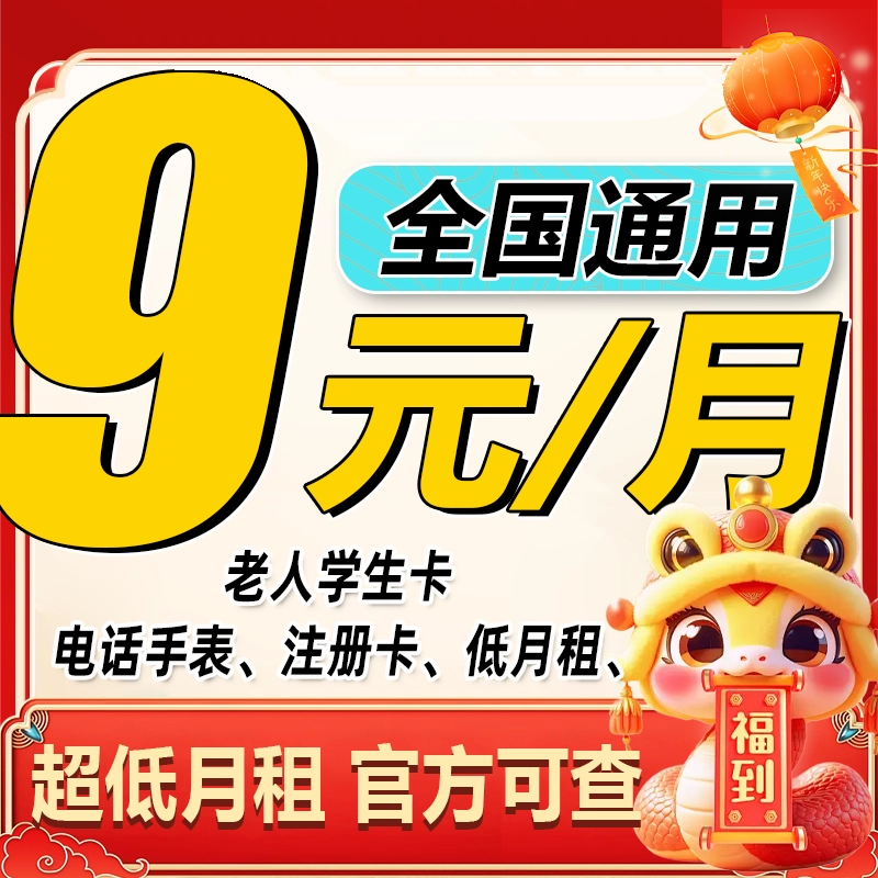 手机卡电话卡低月租卡老人学生儿童手表卡流量卡注册4G5G全国通用