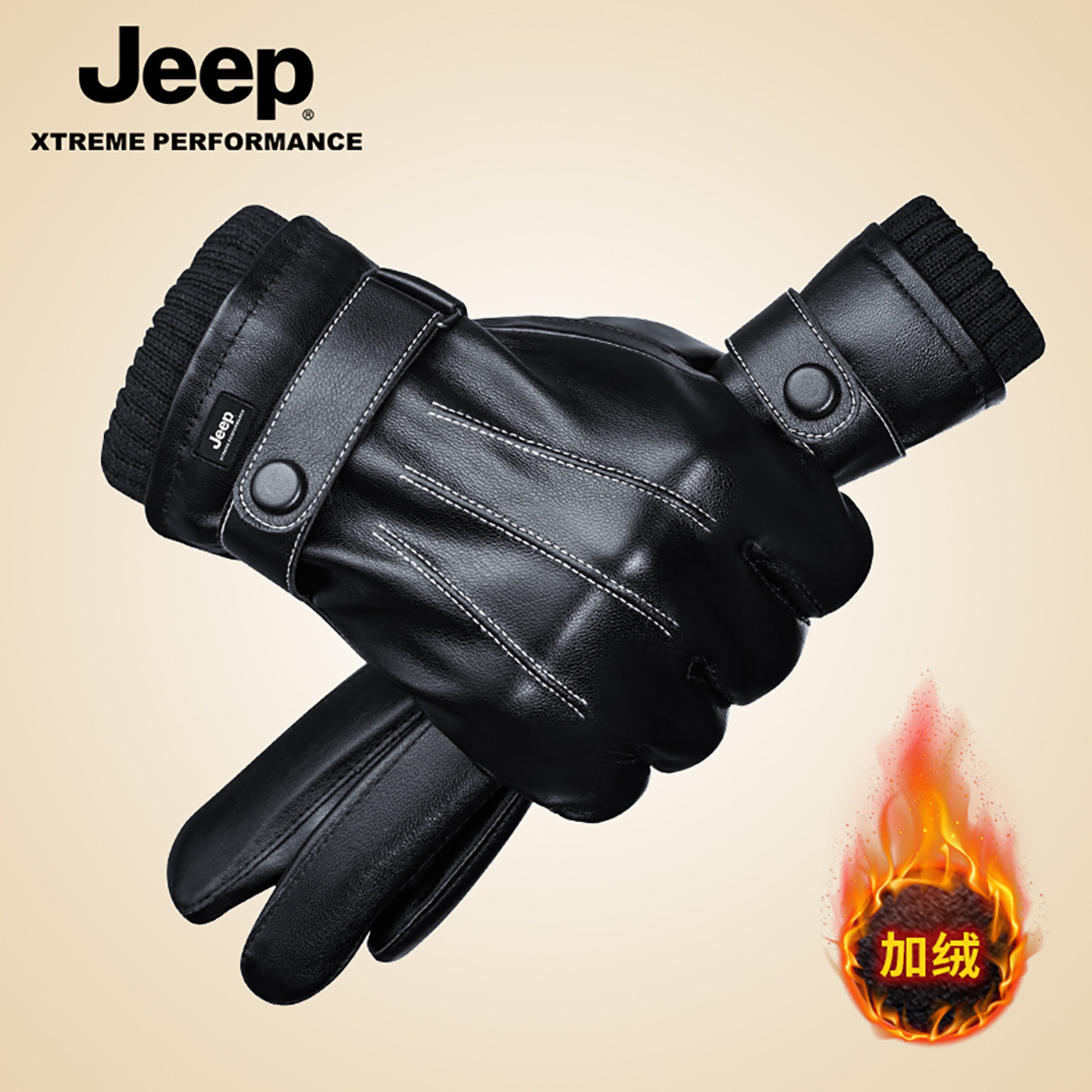 jeep吉普皮手套女士冬季骑行加绒加厚防风触屏保暖电动车手套女冬