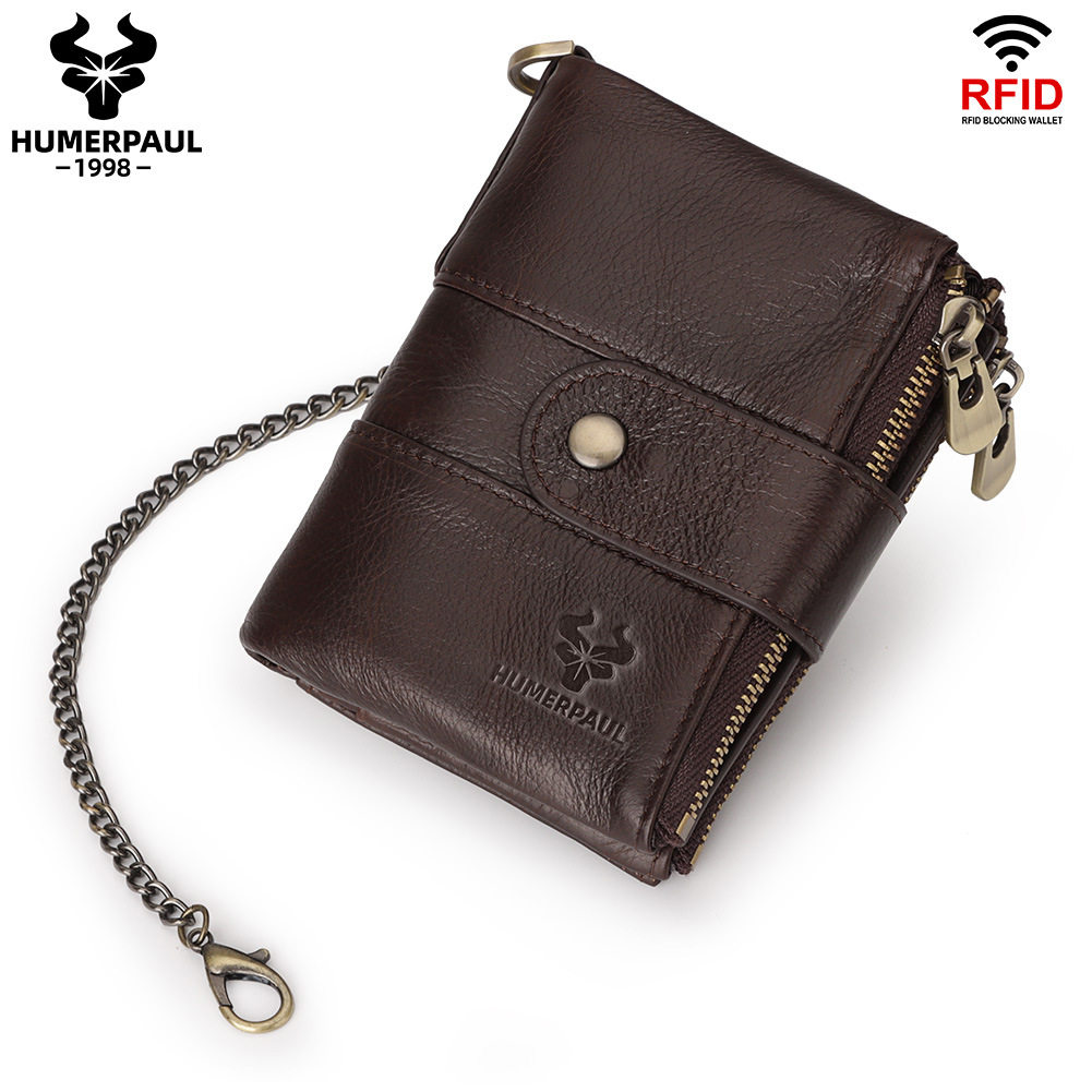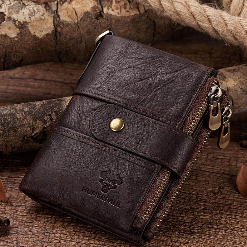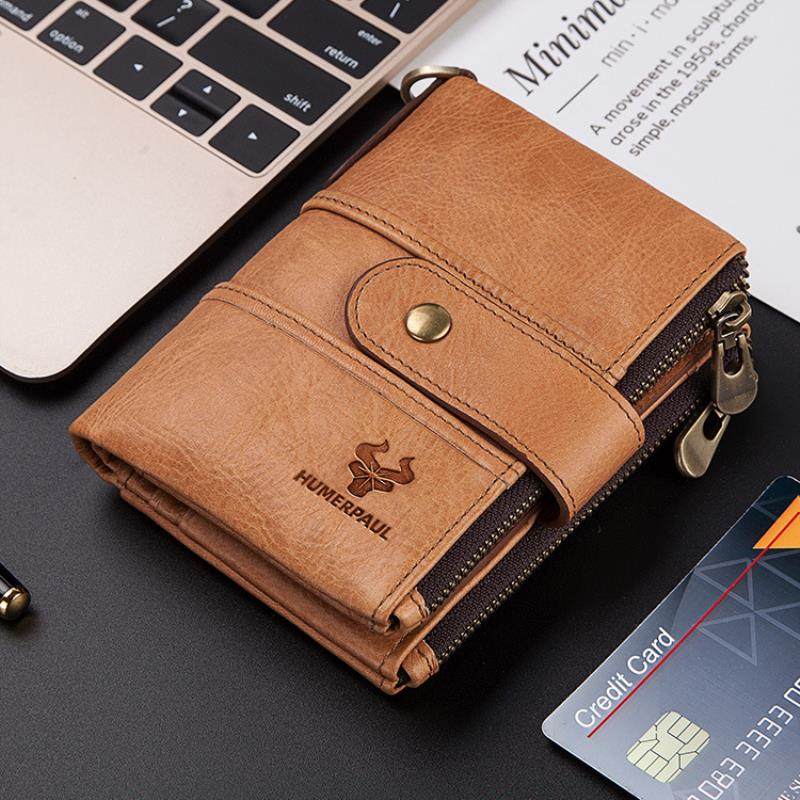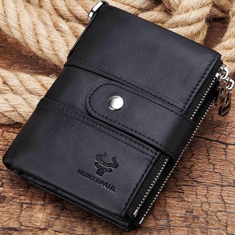 RFID防盗刷钱包真皮包多功能搭扣拉链复古疯马牛皮钱包休闲零钱包