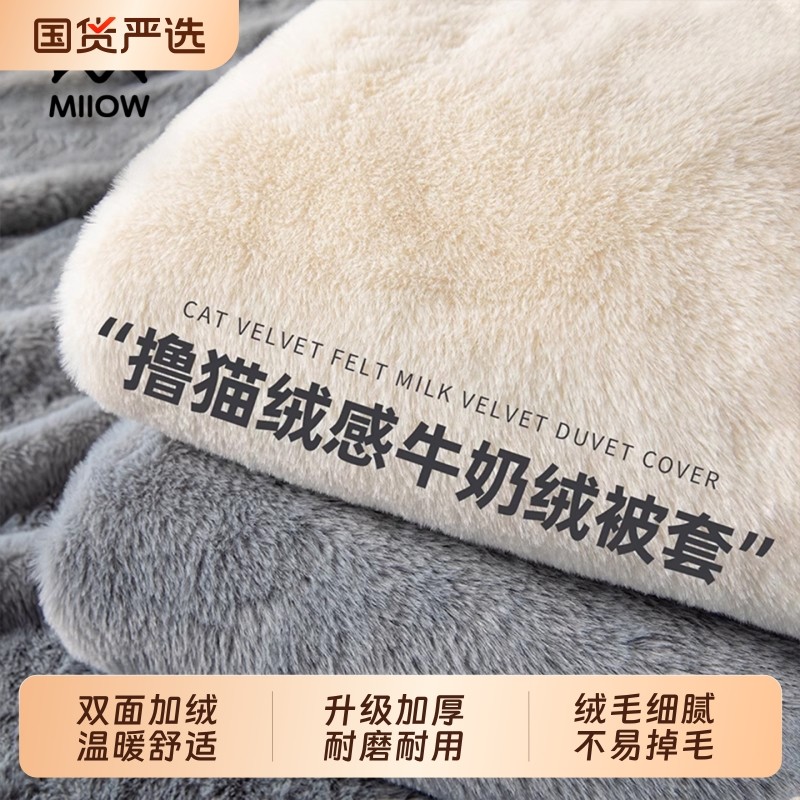猫人牛奶绒被套秋冬季单件双面毛绒被单法兰绒珊瑚绒单人加绒被罩