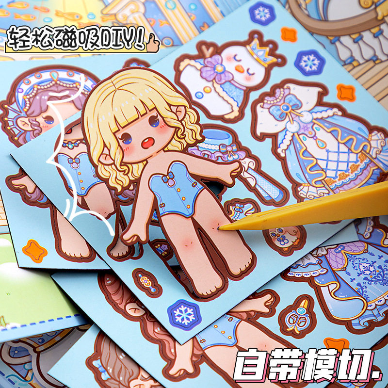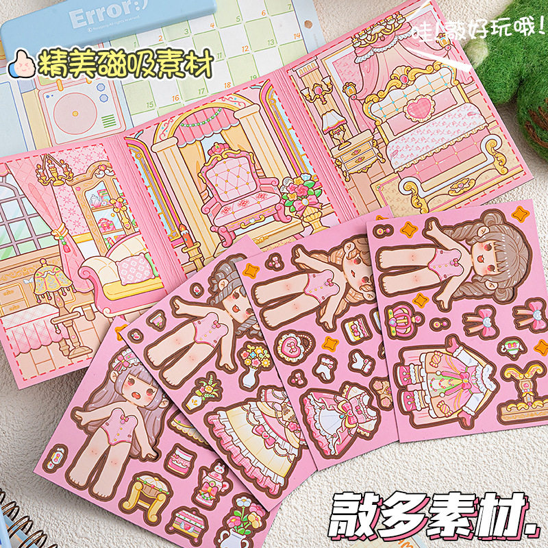 豪华磁力安静书儿童免裁剪磁吸贴纸书女孩手工粘贴diy卡通公主换装书益智玩具医院吸铁石磁力贴纸玩具贴画本