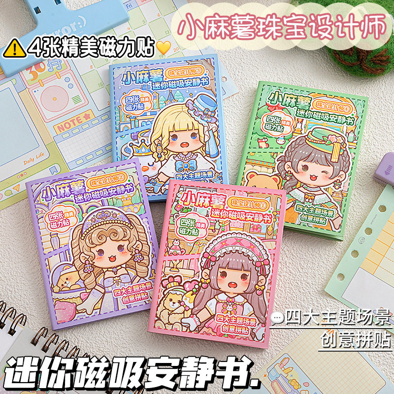 小麻薯磁吸安静书贴纸三折页场景贴纸儿童迷你手工DIY珠宝设计师