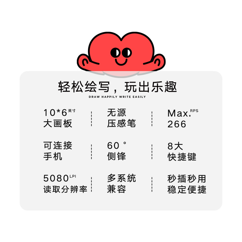 10x6英寸全面板 八个快捷键 8192压感无源笔