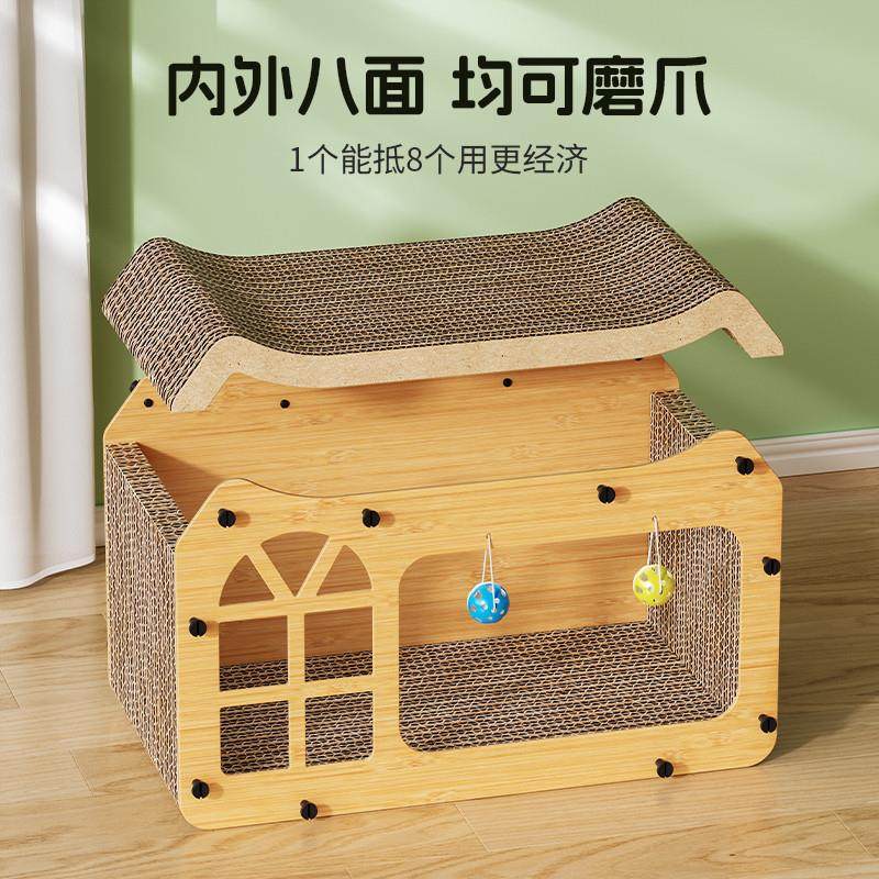 猫窝猫抓板一体耐磨不易掉屑瓦楞纸立式猫爪板猫屋多功能磨爪玩具