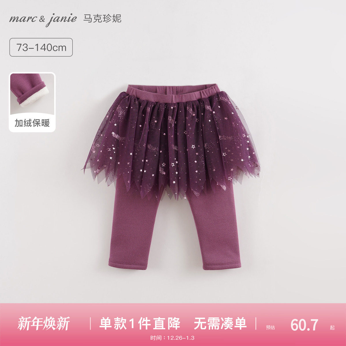 时尚烫银工艺,拼接双层网纱,加绒内里