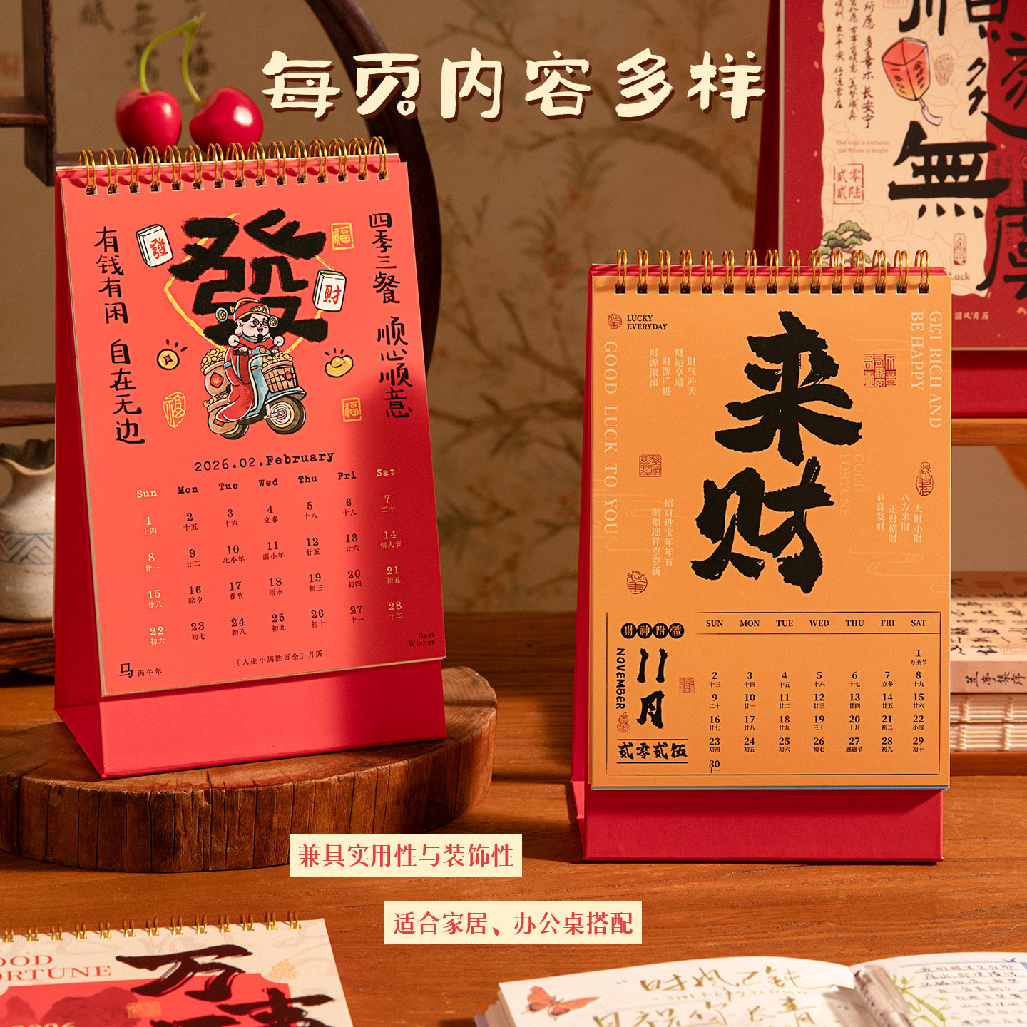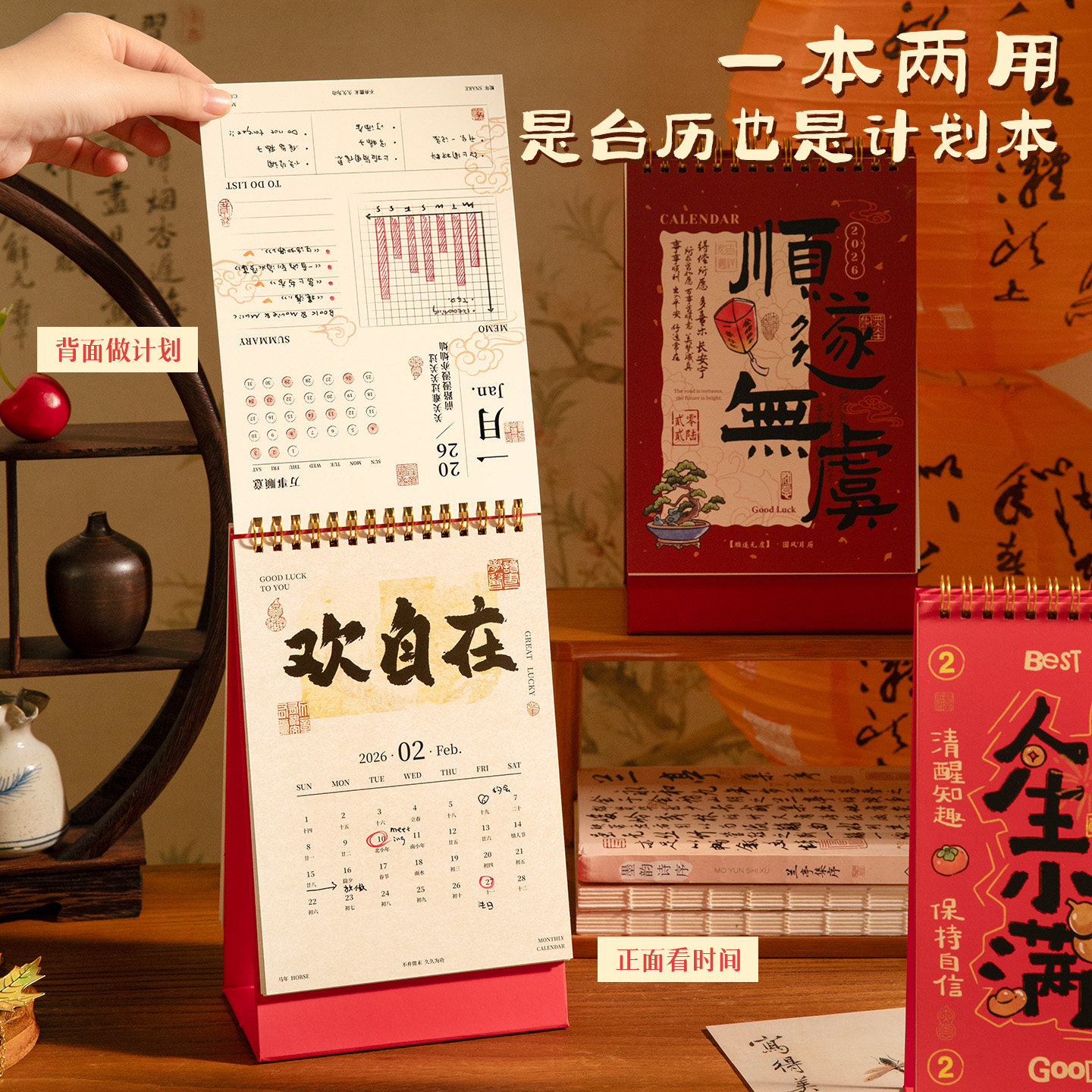 2026年新款国风系列台历中国风桌面摆件新年计划本办公室创意日历