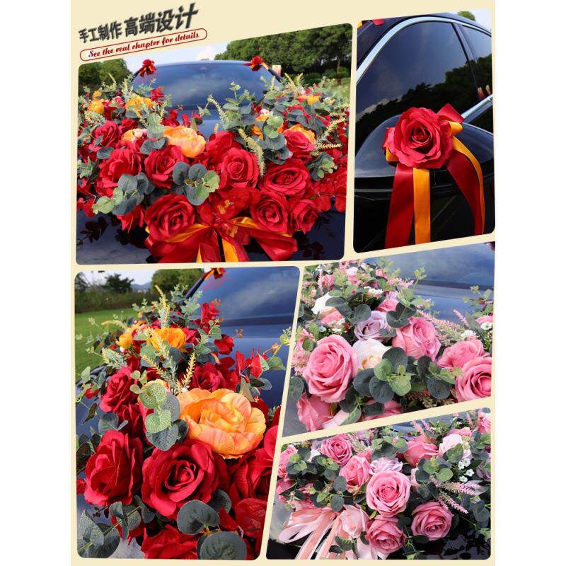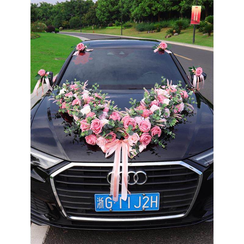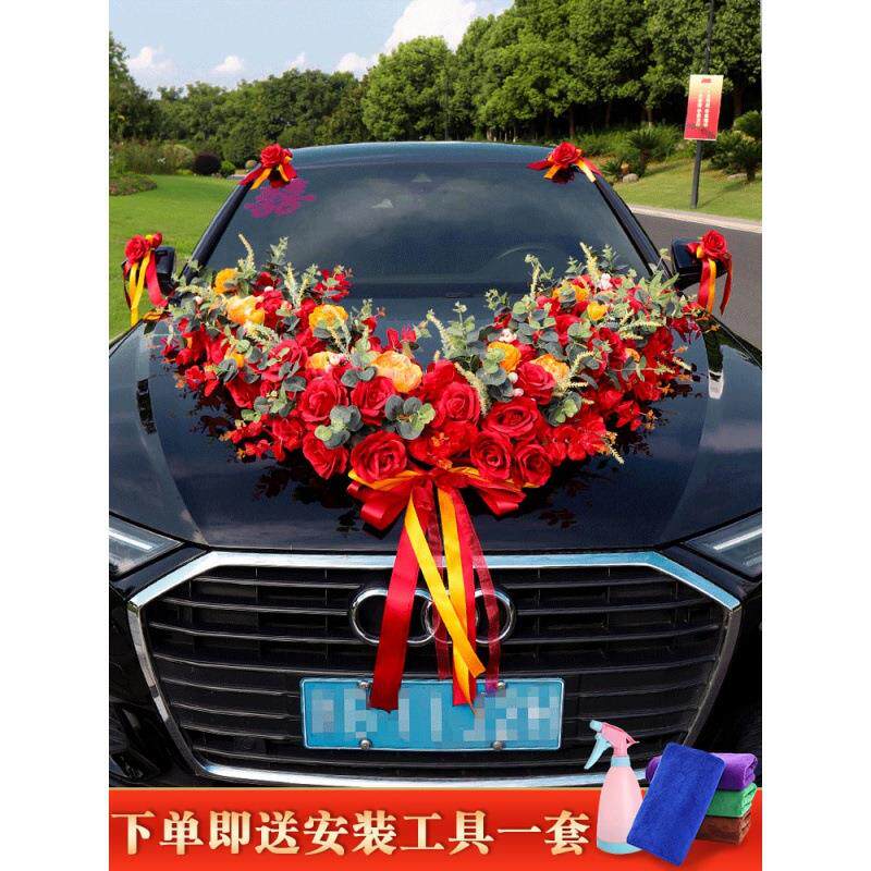 婚车主车装饰高级简单大气车头花大v婚礼头车布置仿真花全套装花