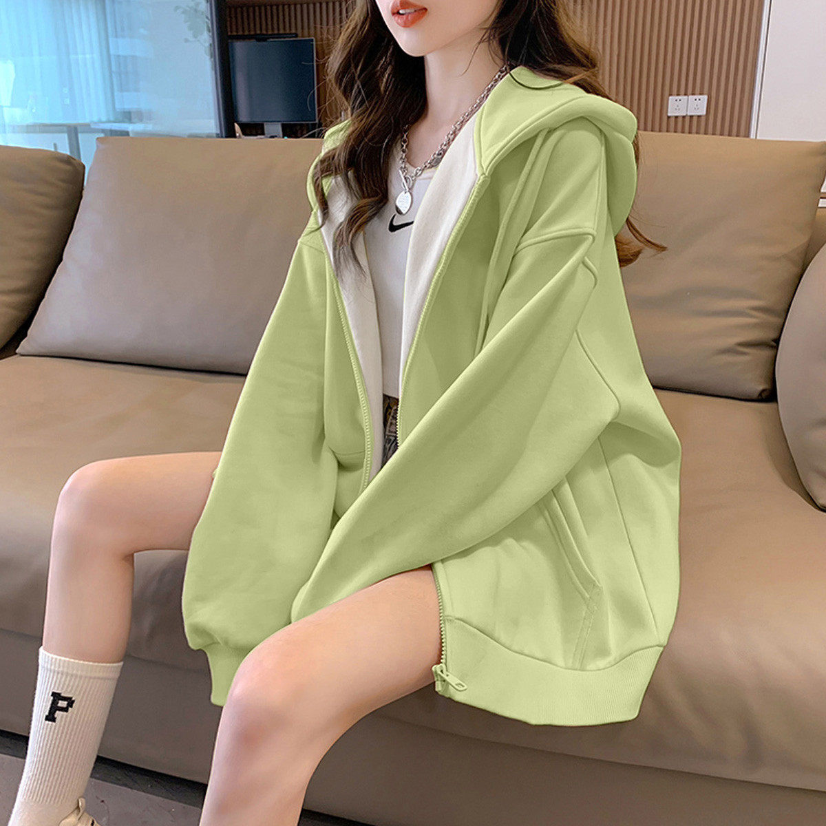 女士加厚外套摇粒绒上衣加绒妈妈中老年双面抓绒春秋冬季新款卫衣
