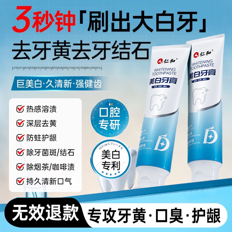 牙膏美白去黄口臭牙结石成人洗白神器官方正品男女士专用旗舰店