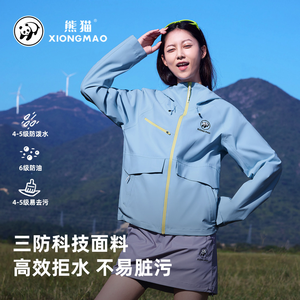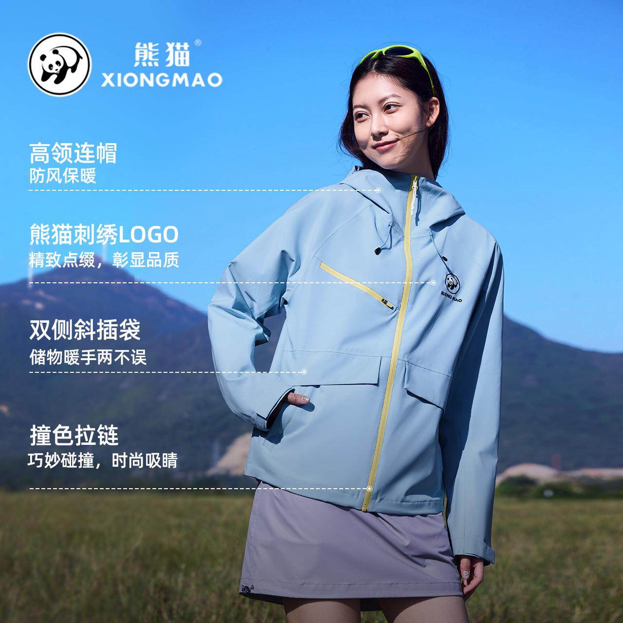 熊猫熊猫三防冲锋衣外套女2026春夏新款防风防泼水骑行户外登山服