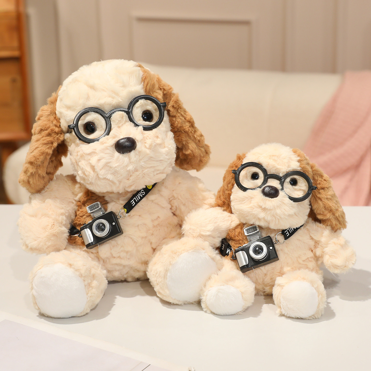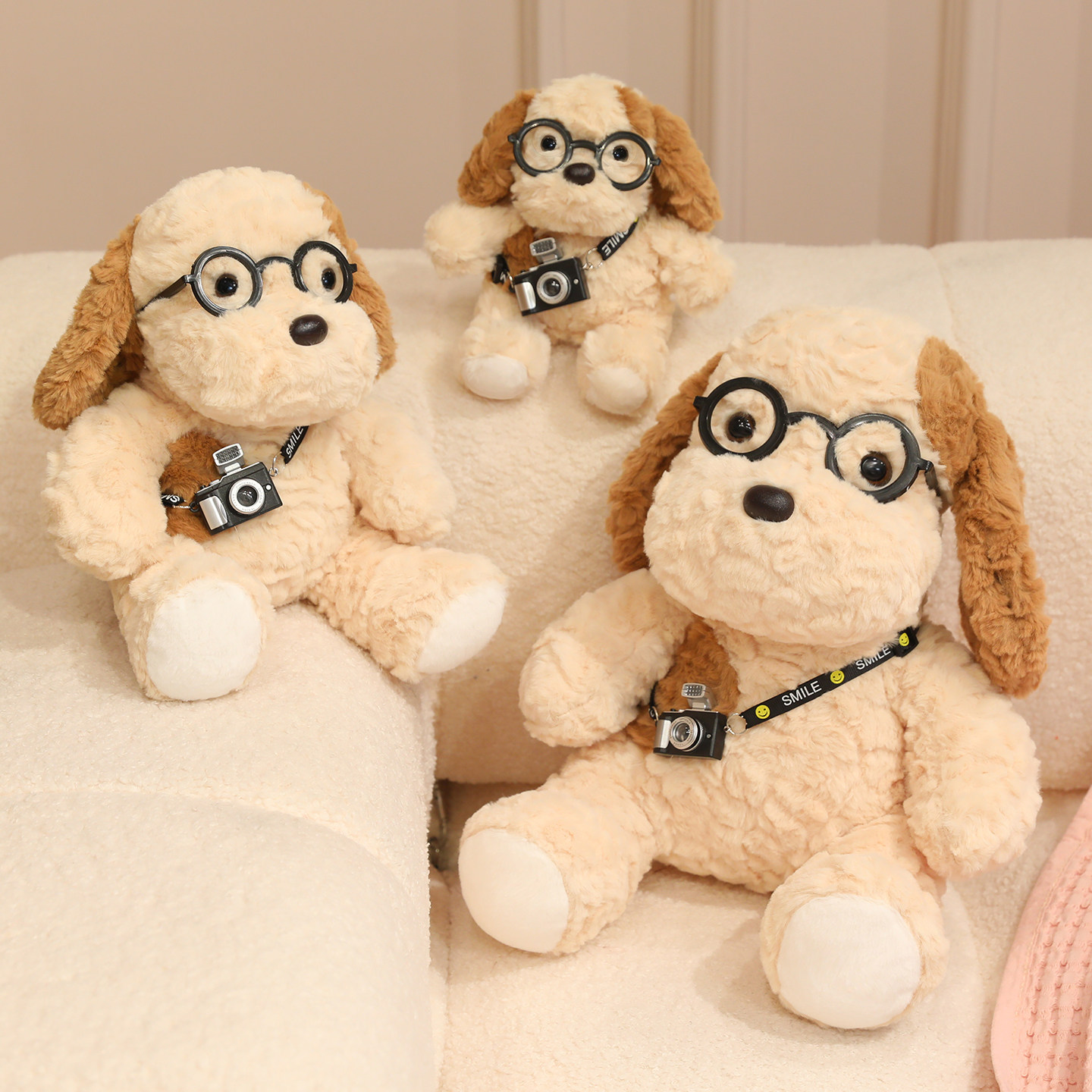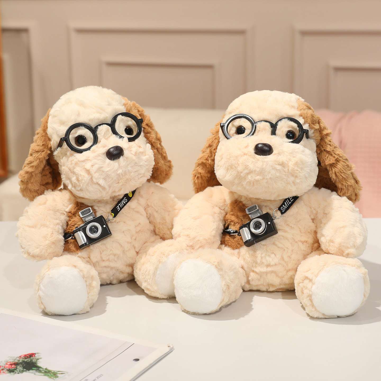 可爱眼镜蛋挞相机小狗毛绒玩具公仔卡通玩偶布娃娃儿童生日礼物女