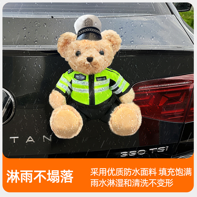 交警小熊2025网红公仔车尾挂件汽车载摆件车载玩偶电动车装饰配件
