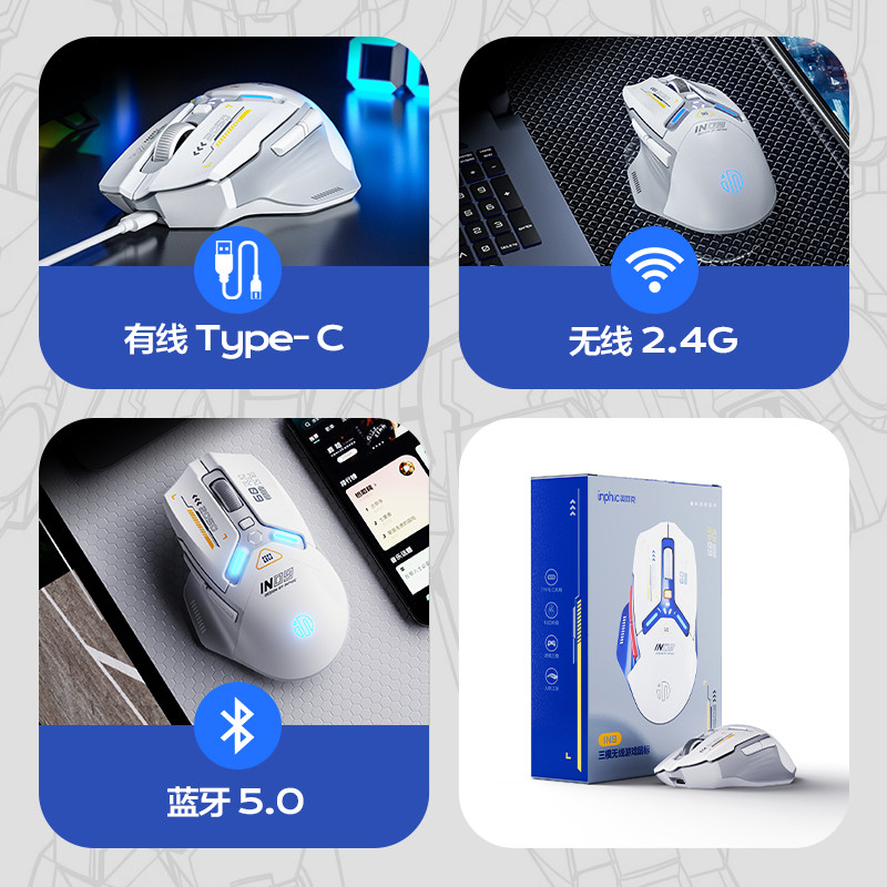 英菲克IN9无线鼠标静音无声有线蓝牙三模电脑笔记本充电游戏电竞