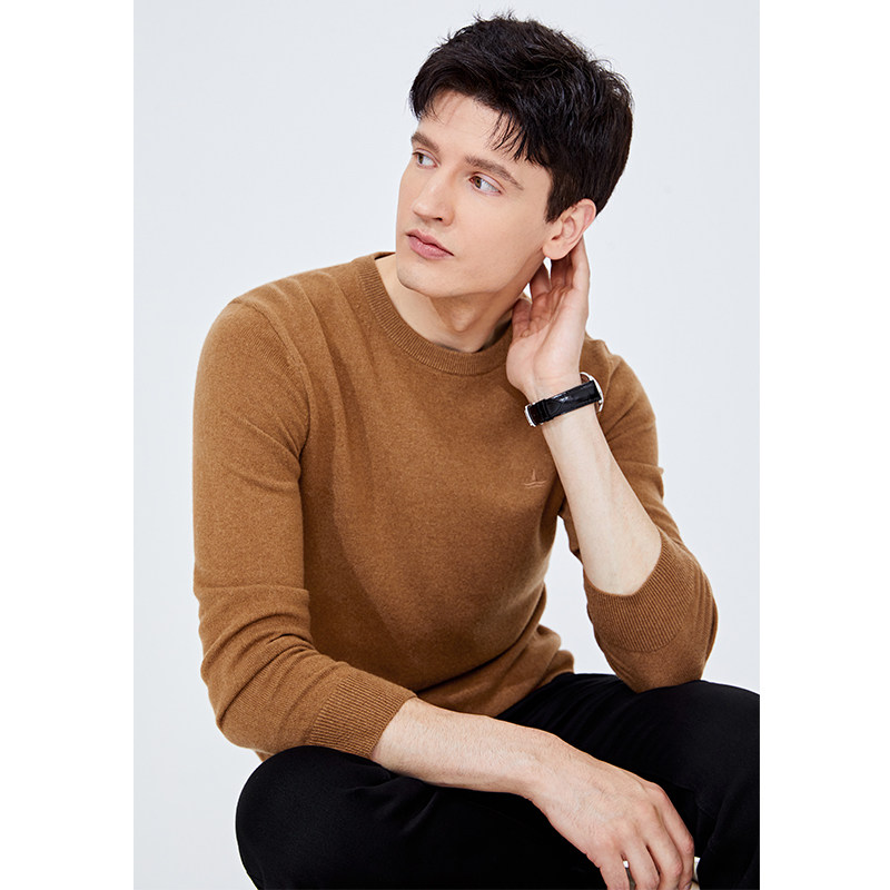 鄂尔多斯市半高领100%纯羊毛衫男休闲中厚保暖毛衣针织打底羊绒衫