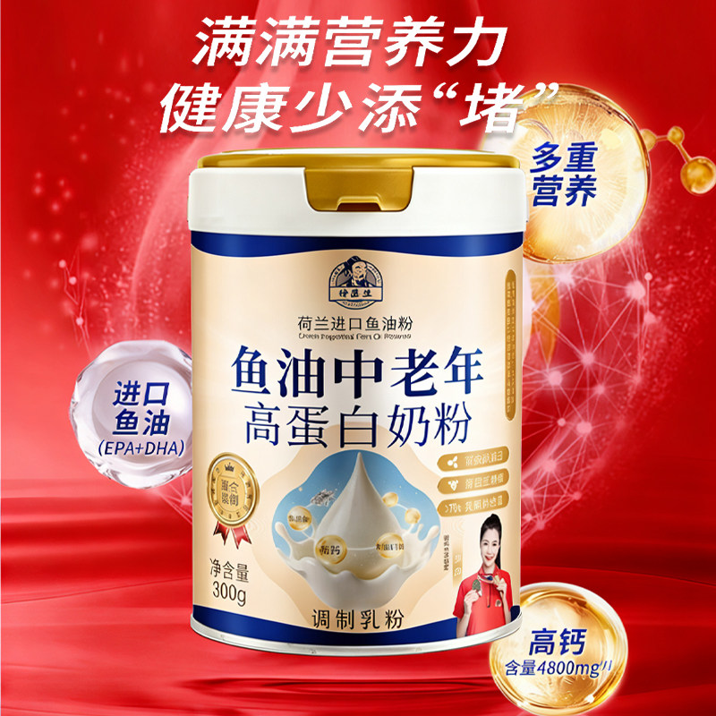 仲中老年奶粉成人鱼油脱脂老人免疫力高钙无蔗糖富硒高蛋白罐装