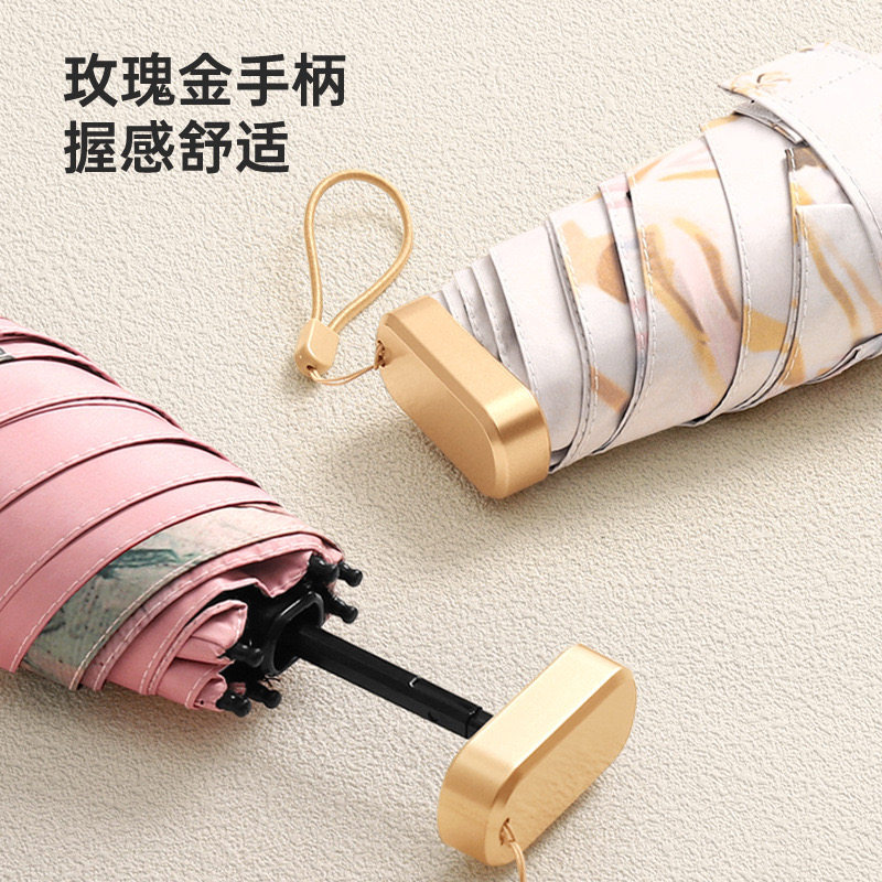 油画风五折便携超轻防紫外线小清新太阳伞晴雨伞两用折叠遮阳防晒