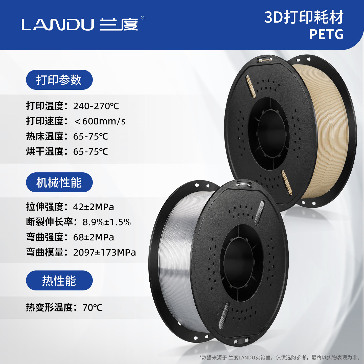兰度PETG 3D打印耗材petg高韧支持高速打印高透明耐摔 1.75mm高韧打印笔材料适用拓竹创想爱乐酷FDM3D打印机