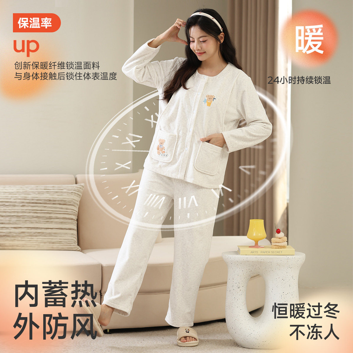 婧麒加绒月子服产后孕妇长袖哺乳睡衣怀孕期待产产妇家居服套装女