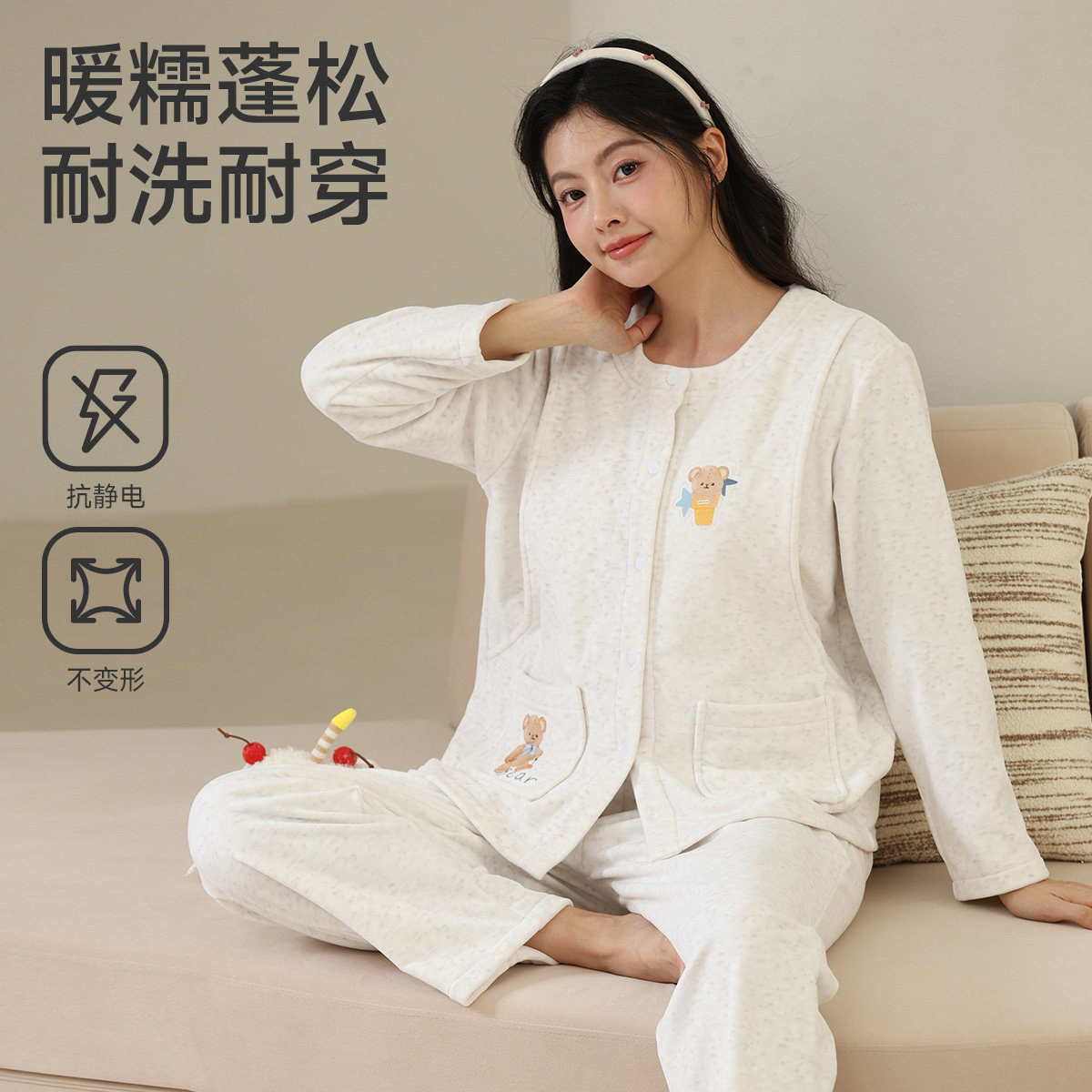 秋冬季空气棉月子服三件套春秋纯棉产后孕妇睡衣哺乳产妇12月份11