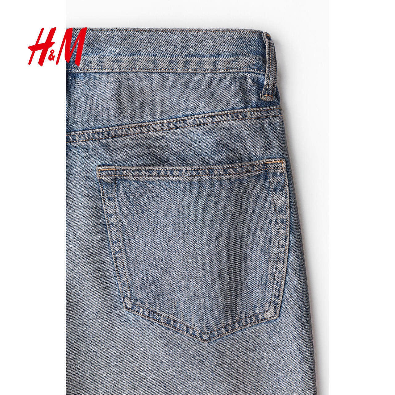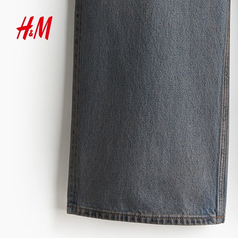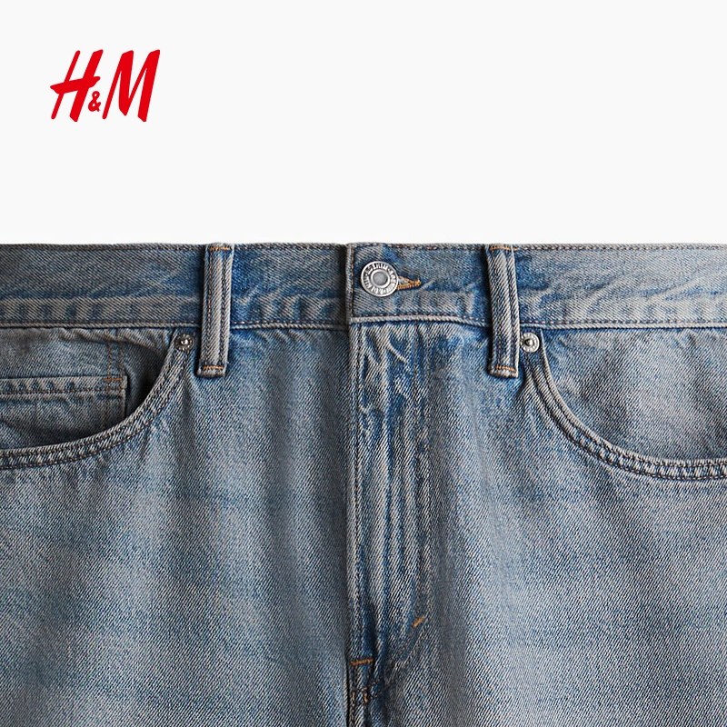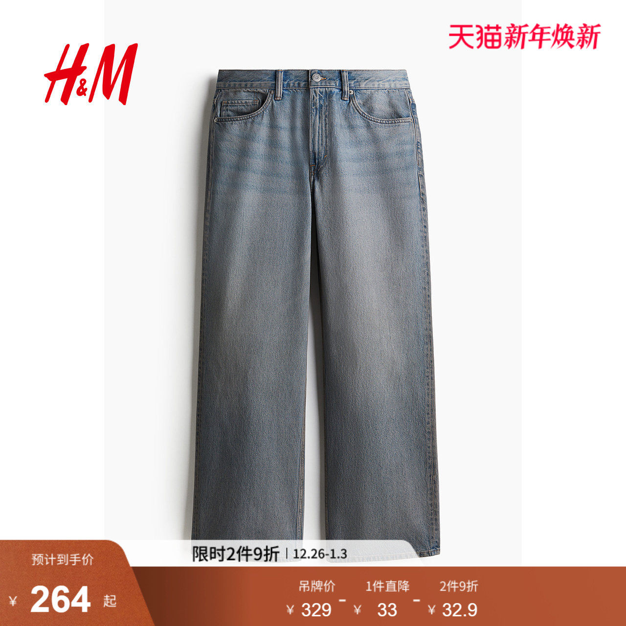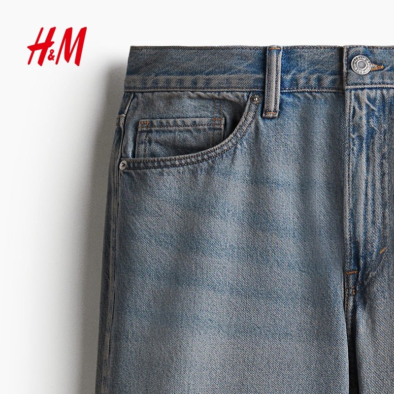 HM男装牛仔裤2025冬季新款宽松直筒高腰丹宁水洗阔腿裤1280921