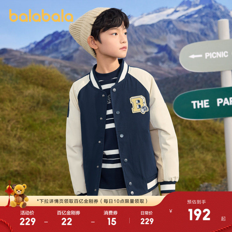 【设计师SICO联名】巴拉巴拉儿童羽绒服棒球领童装男童外套拼色潮