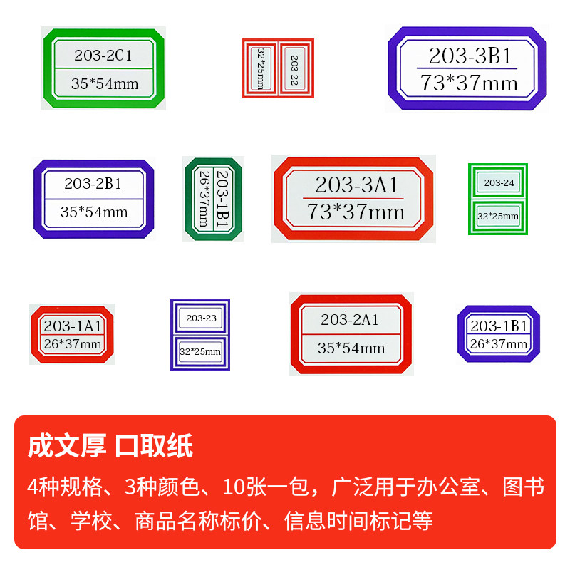 成文厚口取纸不干胶标签纸口曲纸财务用品书标粘贴标签纸不干胶名字贴姓名贴标记贴大号小号口取纸高粘度胶粘