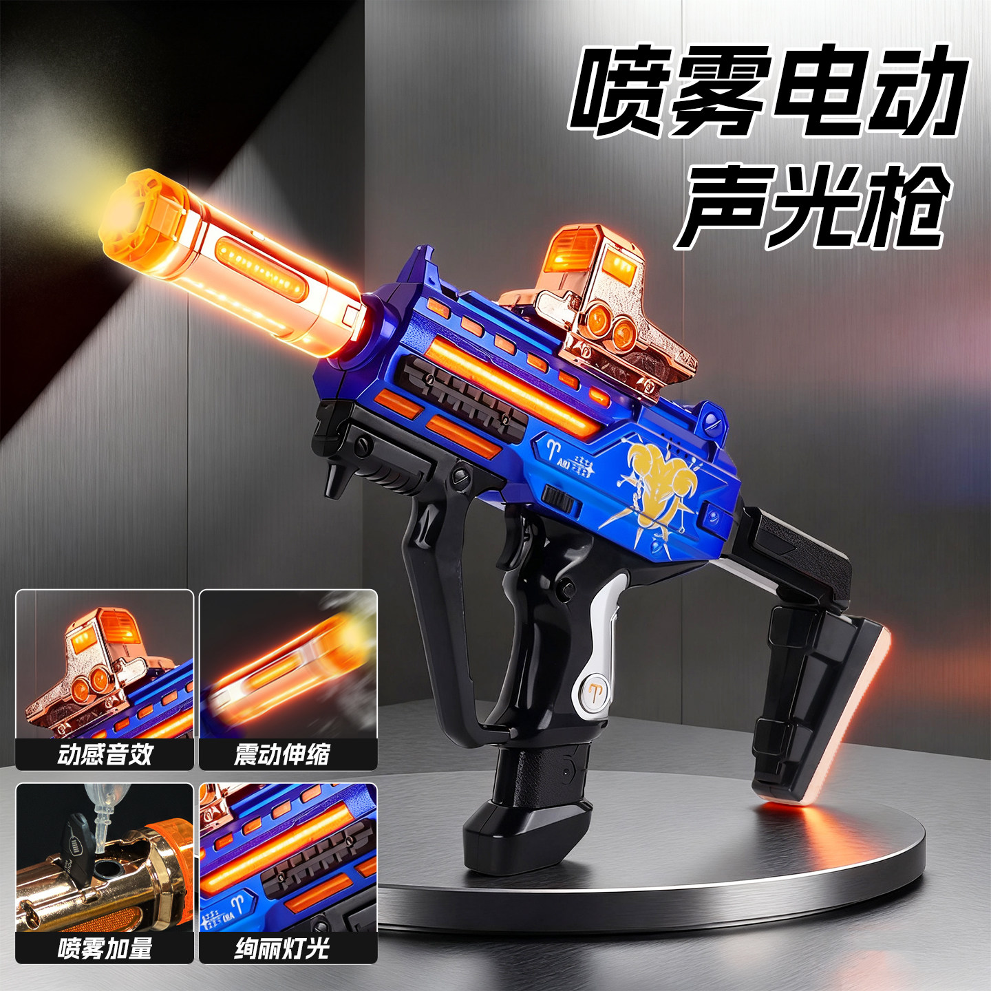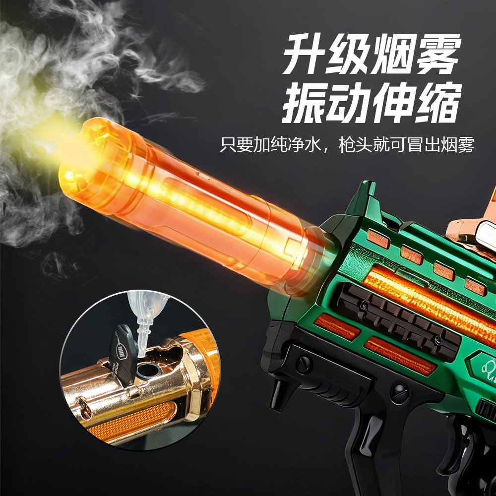 儿童电动声光玩具枪仿真冲锋枪模型伸缩喷雾机关枪男孩生日礼物