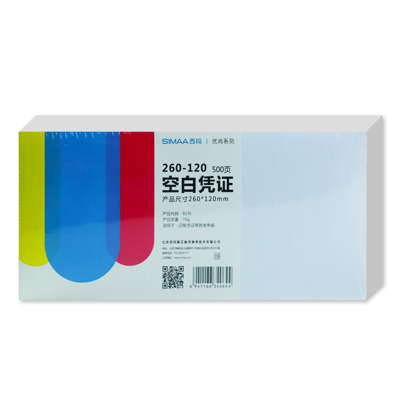 西玛用友70g空白凭证纸260*120mm通用财务会计用品记账凭证发货出入库单打印纸会计凭证封面财务软件500张