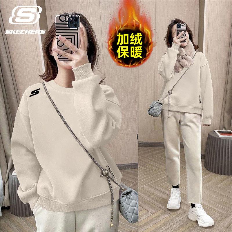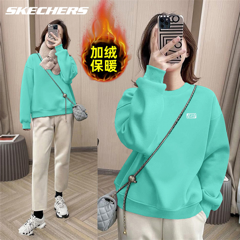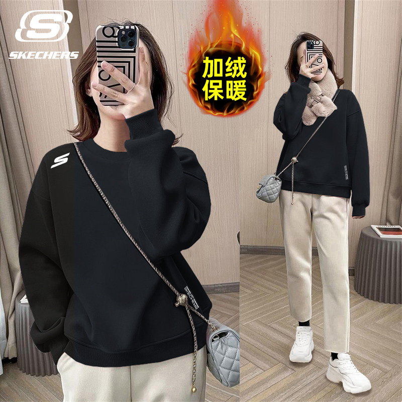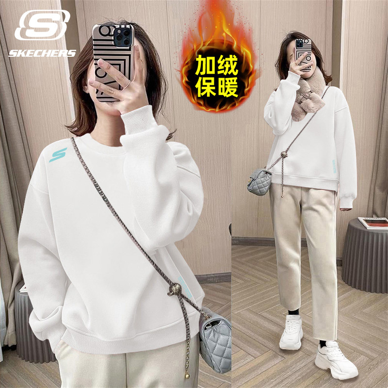 斯凯奇套头卫衣女款2025冬季休闲针织长袖今年流行加绒保暖运动服