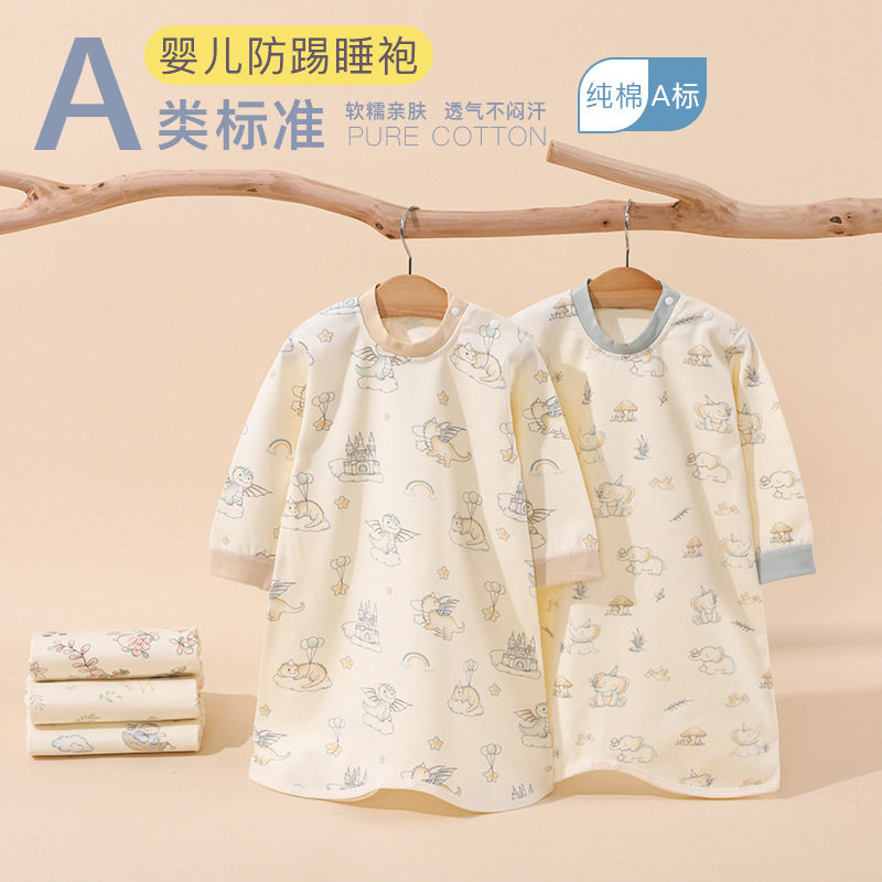 婴儿睡袍春秋款睡衣宝宝家居服睡裙纯棉护肚儿童防踢睡袋男童女童