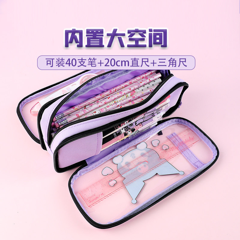 广博三丽鸥小学生库洛米TPU牛津布笔袋女孩文具盒一年级四可爱美乐蒂铅笔盒女童笔盒儿童文具袋酷乐米新款