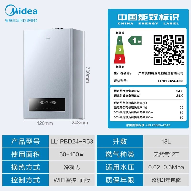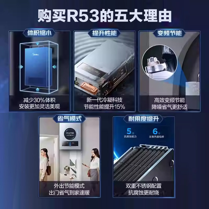 美的壁挂炉天然气 家用燃气采暖热水两用采暖炉地暖供暖一体机R53