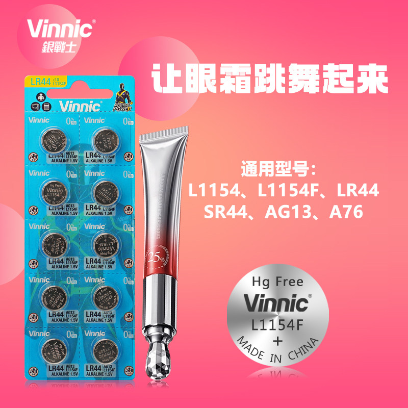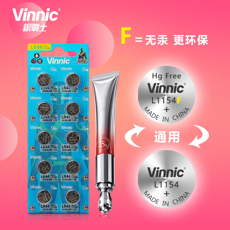 VINNIC L1154F 1.5V纽扣电池lr44 ag13 sr44 a76适用于丸美眼霜假面骑士腰带陀螺万代玩具时王表盘计算器卡尺