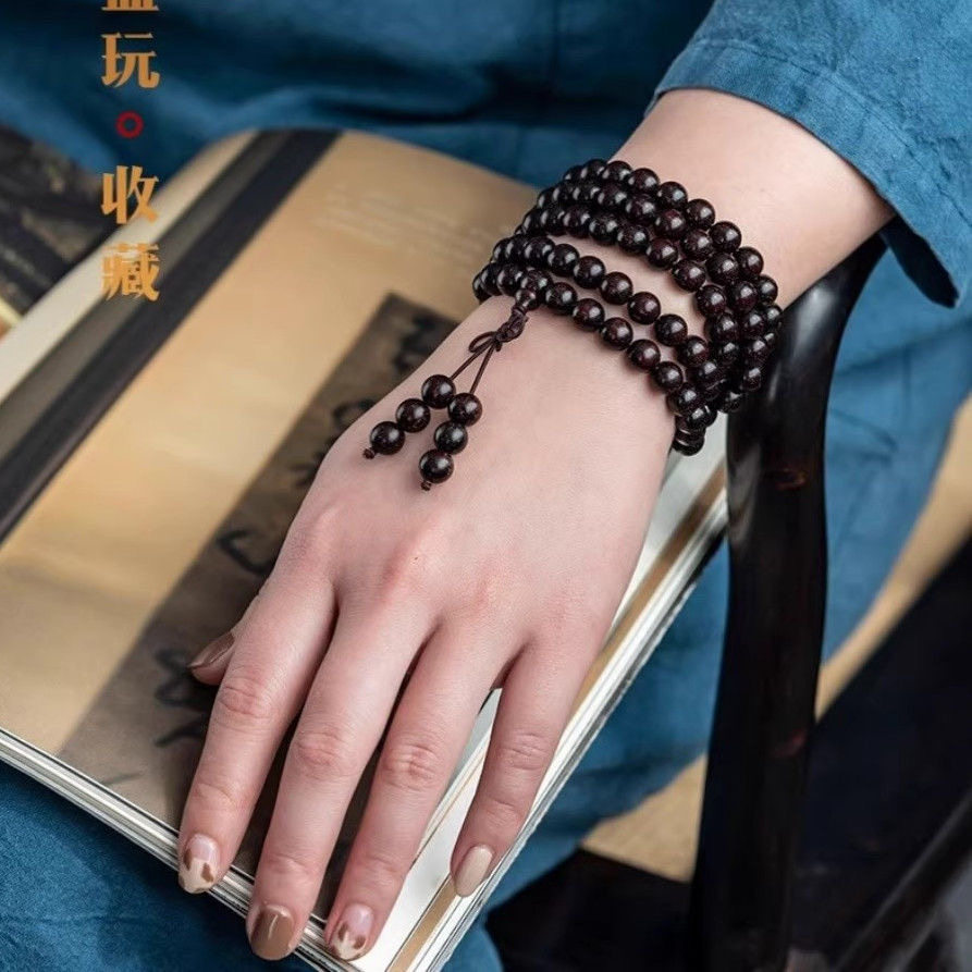 保真正品小叶紫檀手串108颗佛珠手链檀木男女念珠满金星满天星