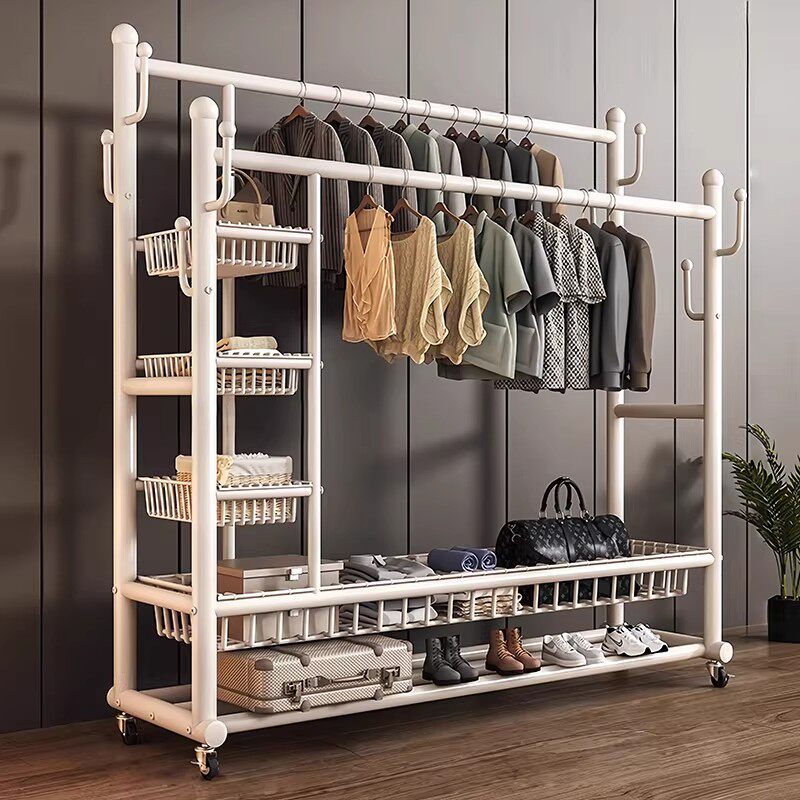 衣架落地卧室奶油风挂衣架家用铁艺简易晾衣架室内客厅移动衣帽架