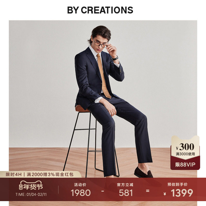 柏品130支纯羊毛商务西服套装男职业正装结婚婚礼新郎伴郎西装